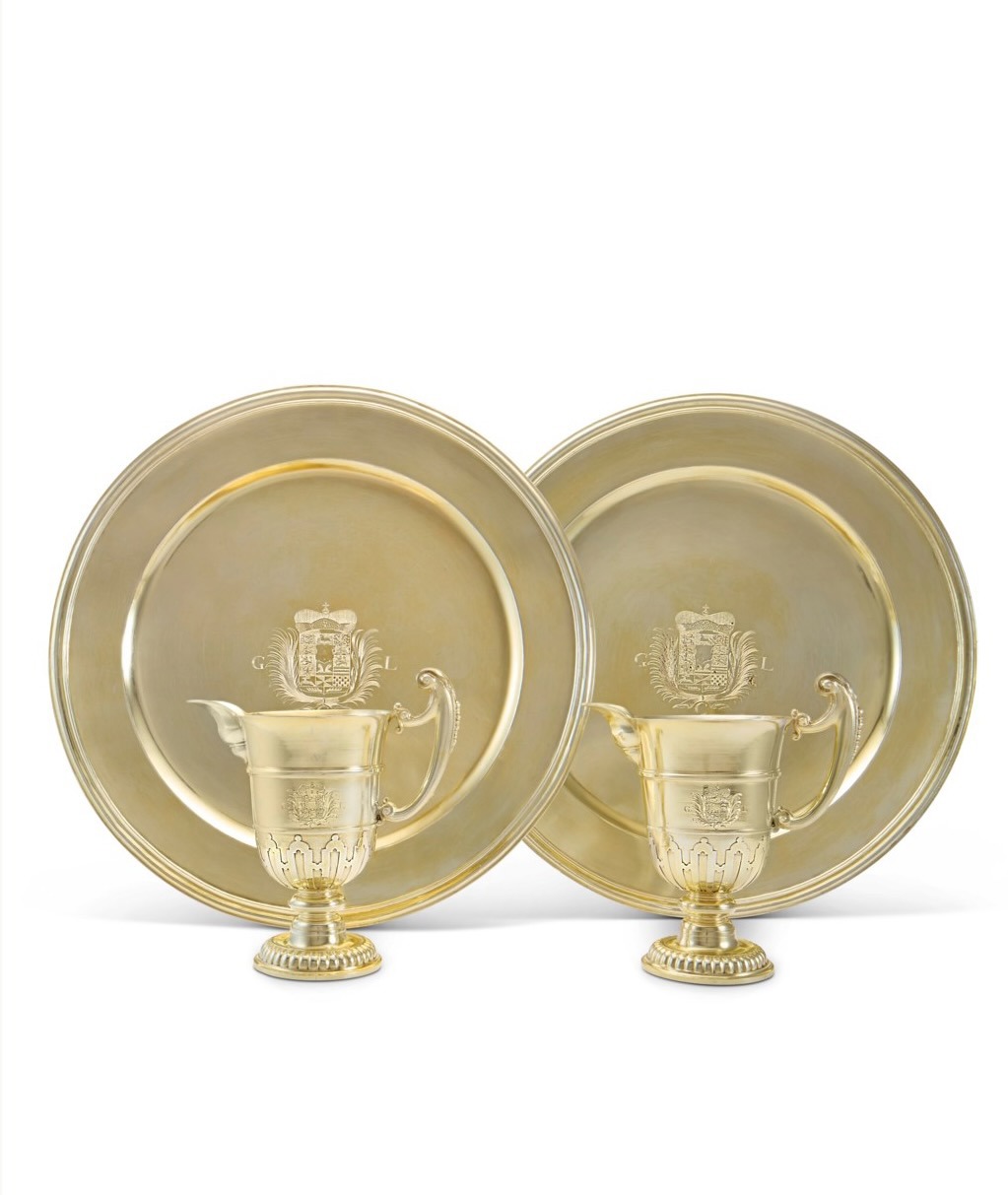 Coppia di piatti da credenza e da tavola in argento dorato della Germania Reale (1700 ca) della collezione di Selim e Mary Silkha (stima 800mila-1.200.000 dollari). Cortesia di Christie’s