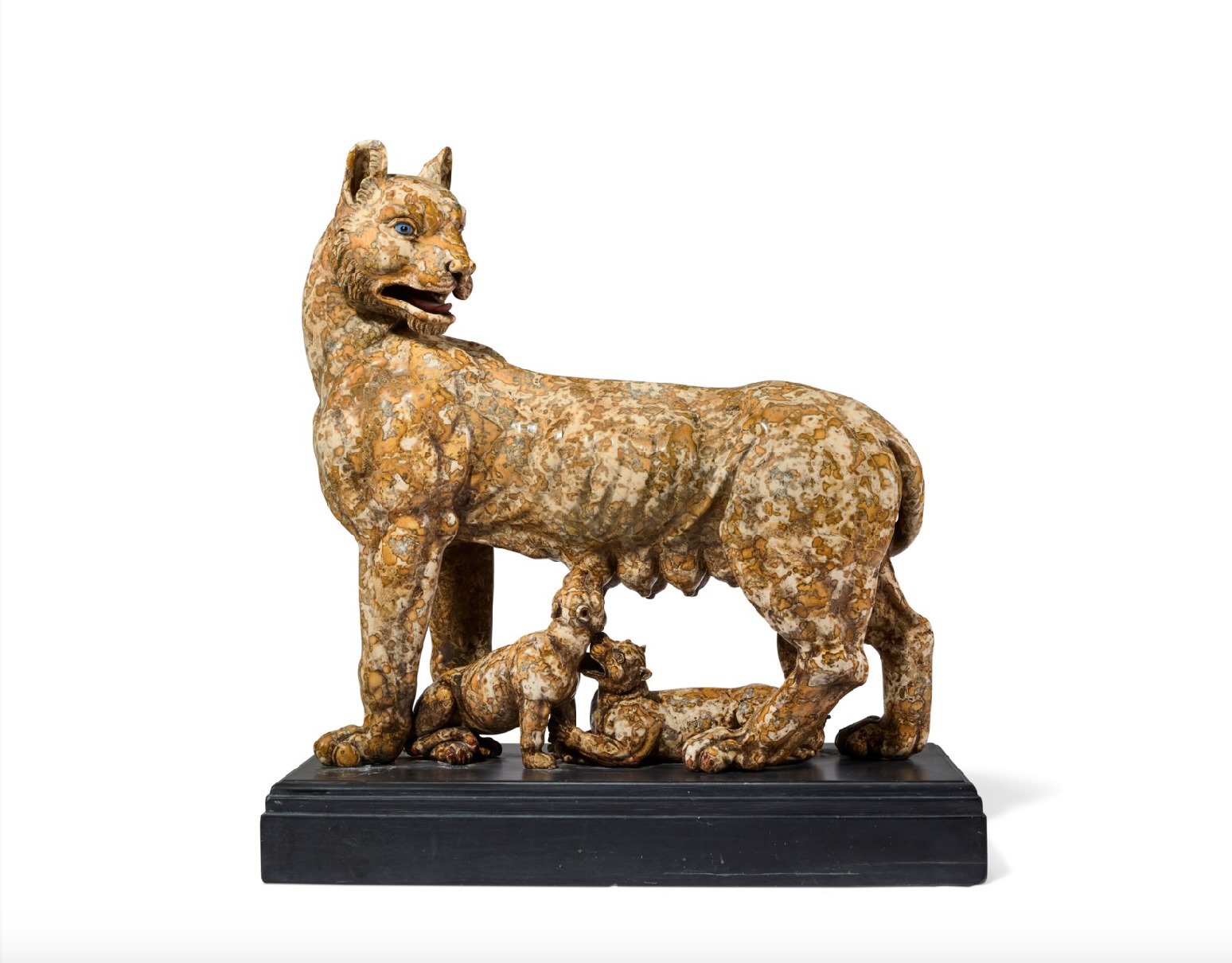 Un leopardo «giallo tigrato» e i suoi cuccioli attribuito a Antonio Moglia stimato tra i 300mila e i 500mila dollari. Cortesia di Christie’s