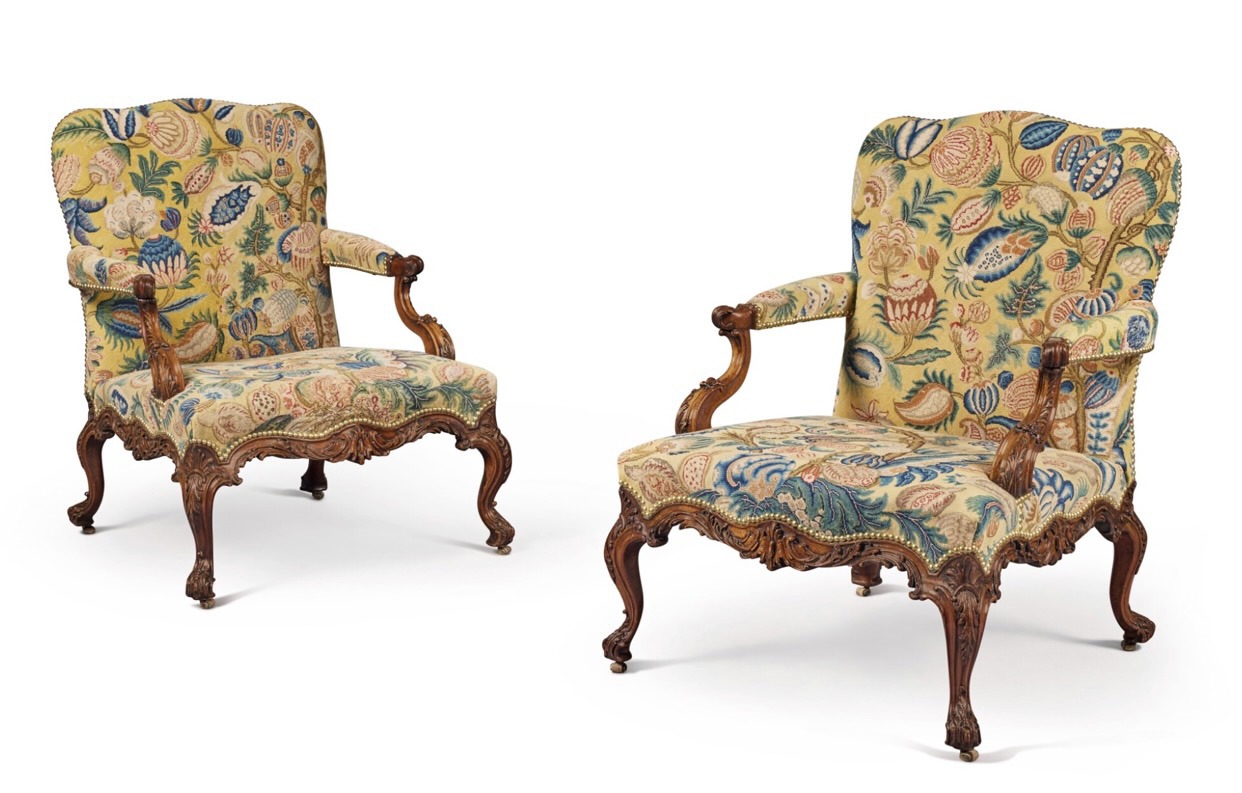 Coppia di poltrone da biblioteca in mogano intagliato della fine di Giorgio II (1755 circa). Cortesia di Sotheby’s
