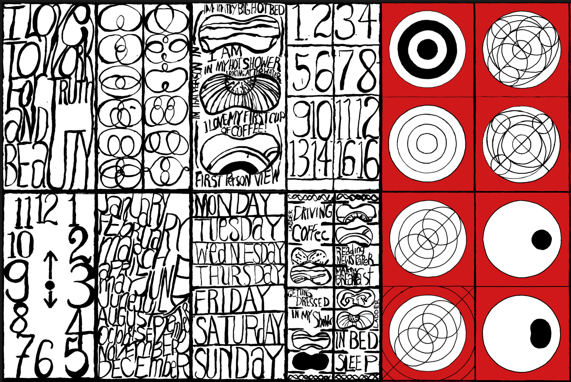 In occasione del suo 15° anniversario, The Blank presenta, nello storico Palazzo della Ragione di Bergamo, That Person’s Heaven, mostra personale dell’artista americano Matt Mullican. La mostra apre il Festival d’Arte Contemporanea ArtDate, che si sviluppa con oltre quaranta appuntamenti nella città di Bergamo e che quest’anno ha come tema portante il silenzio. Matt Mullican torna a esporre in un’istituzione italiana dopo la retrospettiva al Pirelli Hangar Bicocca (2018), realizzando una nuova grande installazione concepita appositamente per gli spazi di Palazzo della Ragione. Il titolo della mostra fa riferimento a That Person, un personaggio specifico che Mullican incarna durante le sue sessioni ipnotiche, un alter ego che non coincide pienamente con l’artista, ma che ne abita il corpo e ne usa la voce. È un’entità che si esprime con gesti infantili, con un linguaggio apparentemente privo di filtro, a tratti caotico, a tratti sorprendentemente lucido. E proprio in stato di ipnosi è realizzata l’opera che nella sua totalità si presenta come una monumentale griglia quadrata di 16x16 metri, composta da trentadue lavori di uguali dimensioni, realizzati metà in bianco e nero e metà in rosso.