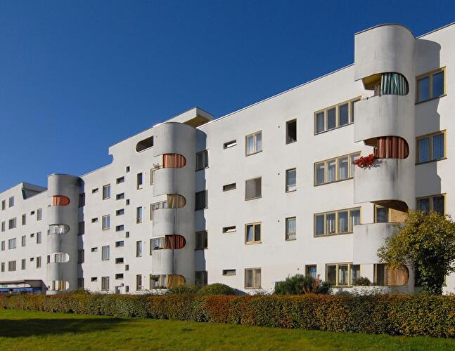 Per risolvere il problema delle condizioni abitative della classe operaia, quasi sempre confinata in edifici di bassa qualità e scarse condizioni di illuminazione e igiene, gli architetti tedeschi cercarono ispirazione nelle esperienze inglesi delle città giardino promosse dal riformatore Ebenezer Howard (1850-1928) e in quelle dell’edilizia sociale olandese del Piano di espansione di Amsterdam Sud di Hendrik Berlage (1856-1934). Ma fu soprattutto l’aderenza ai nuovi principi del modernismo architettonico, promossi da Le Corbusier nel primo dopoguerra, a dare avvio a una fase di sperimentazione di eccezionale interesse e di grande impatto nella storia dell’architettura moderna. Questo importante programma edilizio, motivato dalla grave penuria di alloggi, venne promosso e guidato da un architetto riformatore, Martin Wagner (1885-1957), capo della pianificazione urbanistica di Berlino dal 1924 fino a quando, con l’avvento del nazismo, dovette lasciare la Germania.
