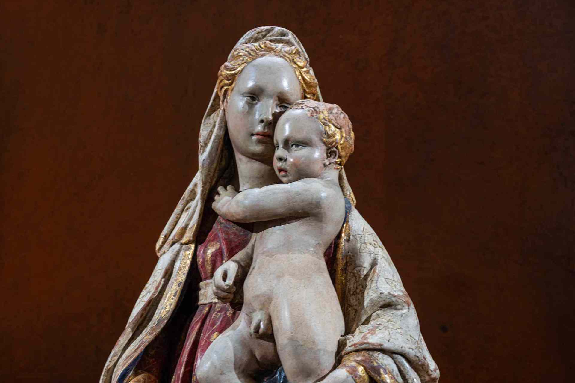 Dalla Toscana si passa alla vicina Umbria per perdersi nel borgo di Citerna, che domina dall’alto la valle del Tevere: inserita nel circuito dei Borghi più belli d’Italia, punto di passaggio del Cammino di san Francesco, è circondata da mura medievali dove si apre il percorso di ronda. Emblema di Citerna è la «Madonna con il Bambino» di Donatello che si può scoprire dopo aver apprezzato, nel cuore del centro storico, nella trecentesca Chiesa di San Francesco, la «Deposizione di Cristo dalla Croce» di Nicolò Circignani detto il Pomarancio, il «Cristo in gloria» attribuito a Raffaellino del Colle, gli affreschi riferiti alla bottega di Luca Signorelli e anche una terracotta robbiana. Entrando in punta di piedi nella sacrestia della chiesa, infatti, ecco che si ammira la devozionale «Madonna con il Bambino» in terracotta policroma (alta 114 cm), attribuita a Donatello. Il suo ritrovamento avvenne nella stessa chiesa nel 2001, durante l’attività di catalogazione, da parte di una giovane storica dell’arte, Laura Ciferri, che notò l’opera in maniera del tutto casuale. Dopo uno studio approfondito, nel 2005 la scultura fu ricondotta a Donatello, come opera giovanile (1415-20), contraddistinta dalla purezza dei lineamenti del volto della Madonna che, avvolta da vesti ben panneggiate, tiene in braccio il Bambino, colto in un momento di gioiosa vivacità. Nel 2010, dopo un accurato restauro presso l’Opificio delle Pietre Dure di Firenze, la scultura è stata riportata alla colorazione originale.
