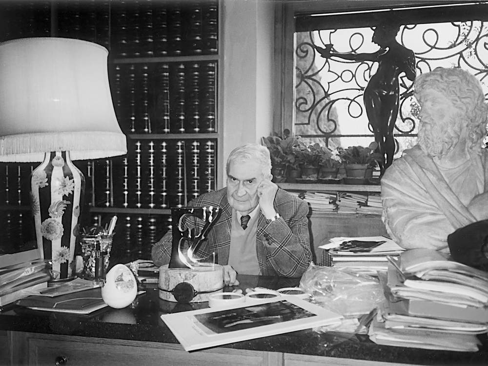 Federico Zeri al suo tavolo di lavoro a Villa Mentana
