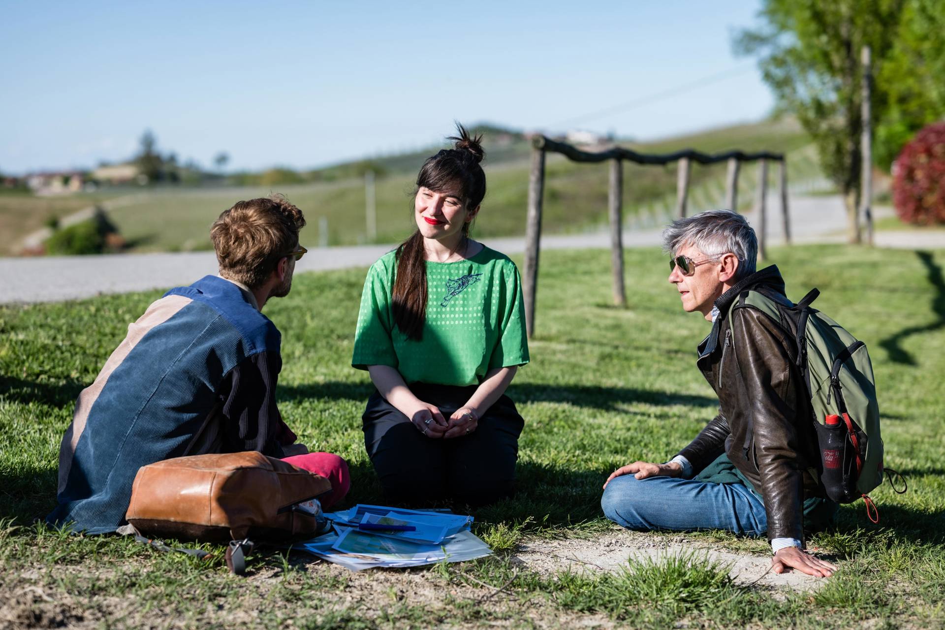 Petrit Halilaj, Marta Papini e l'assessore alla cultura Gianluca Navello durante il sopralluogo a Dogliani © Andrea Guermani