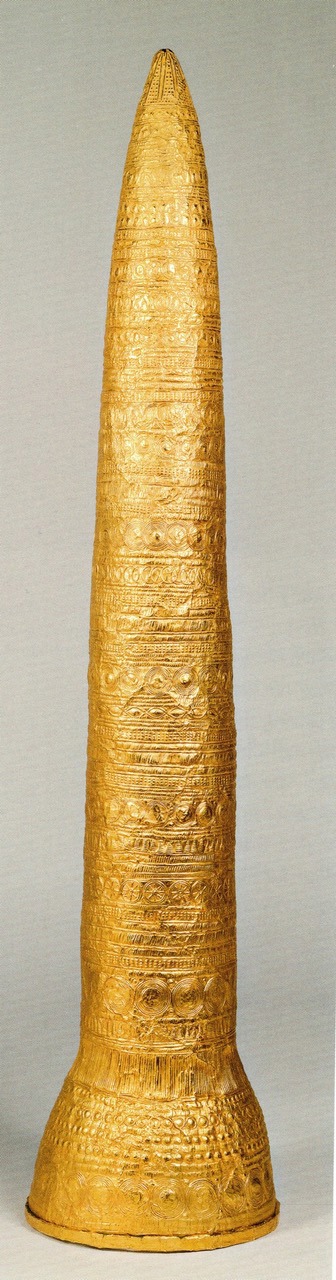 La serie dei top lot del Germanisches è lunghissima, i capolavori si susseguono senza sosta, mescolati tra altri oggetti in un continuo e costante percorso variopinto che rende la visita tutt’altro che scontata e banale. Così, in mezzo a molti reperti risalenti all’Età del Bronzo improvvisamente appare uno dei soli quattro cappelli d’oro conosciuti. Costituito da una sottilissima lastra d’oro puro a forma di lungo cono rovesciato, sbalzato con volute, spirali e altri segni non identificabili, trovato sepolto a Ezelsdorf, vicino a Norimberga, nel 1953, alto circa 70 centimetri, gli studiosi hanno ipotizzato che possa essere un calendario lunisolare, eseguito tra il X e il IX secolo a.C., opera stranissima che porta a riflettere su quanto poco oggi sappiamo sulla cultura celtica di circa 3mila anni fa. Affascinante è la sala con numerosi arazzi eseguiti tra il XIII e il XV secolo probabilmente nelle Fiandre, con soggetti religiosi e profani. Altrettanto spettacolare è la vetrina con una ventina di versatoi in bronzo a forma di animali fantastici, databili tutti alla prima metà del XIII secolo, alcuni provenienti dal monastero di Hildensheim.