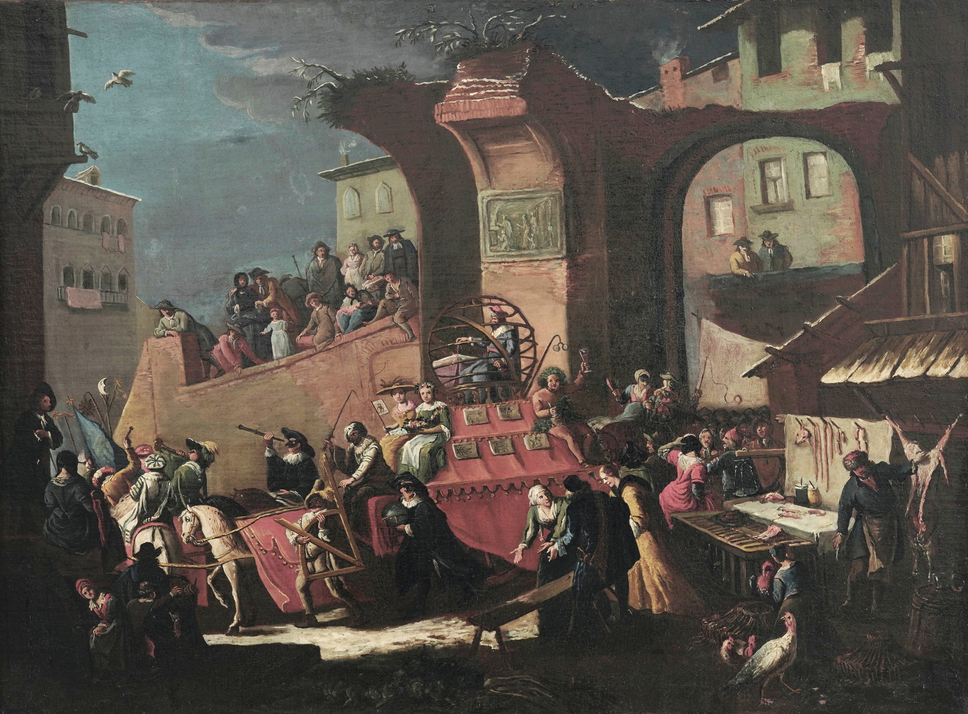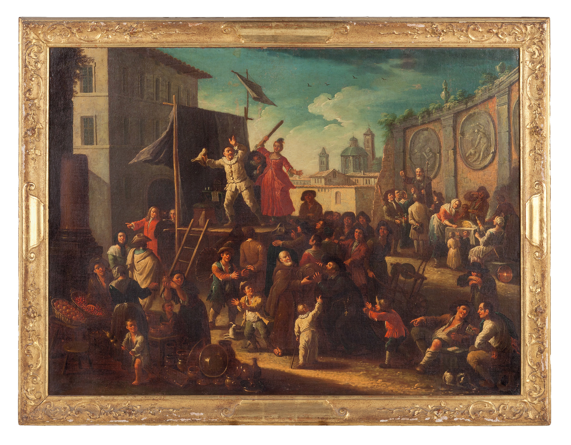 Giovanni Michele Graneri (Torino, 1708-62), «Scena di mercato con commedia dell’arte»