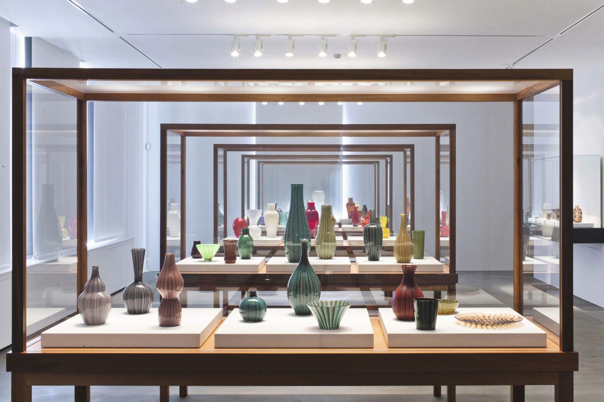 Vetrina realizzata dalla falegnameria Capovilla per Carlo Scarpa. Venini 1932-1947 alla Fondazione Cini di Venezia