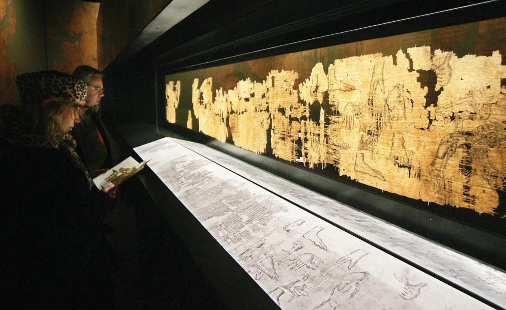 Il Papiro di Artemidoro, qui in mostra a Palazzo Bricherasio a Torino nel 2006, è diffusamente ritenuto un falso. Paco Serinelli/Afp via Getty Images