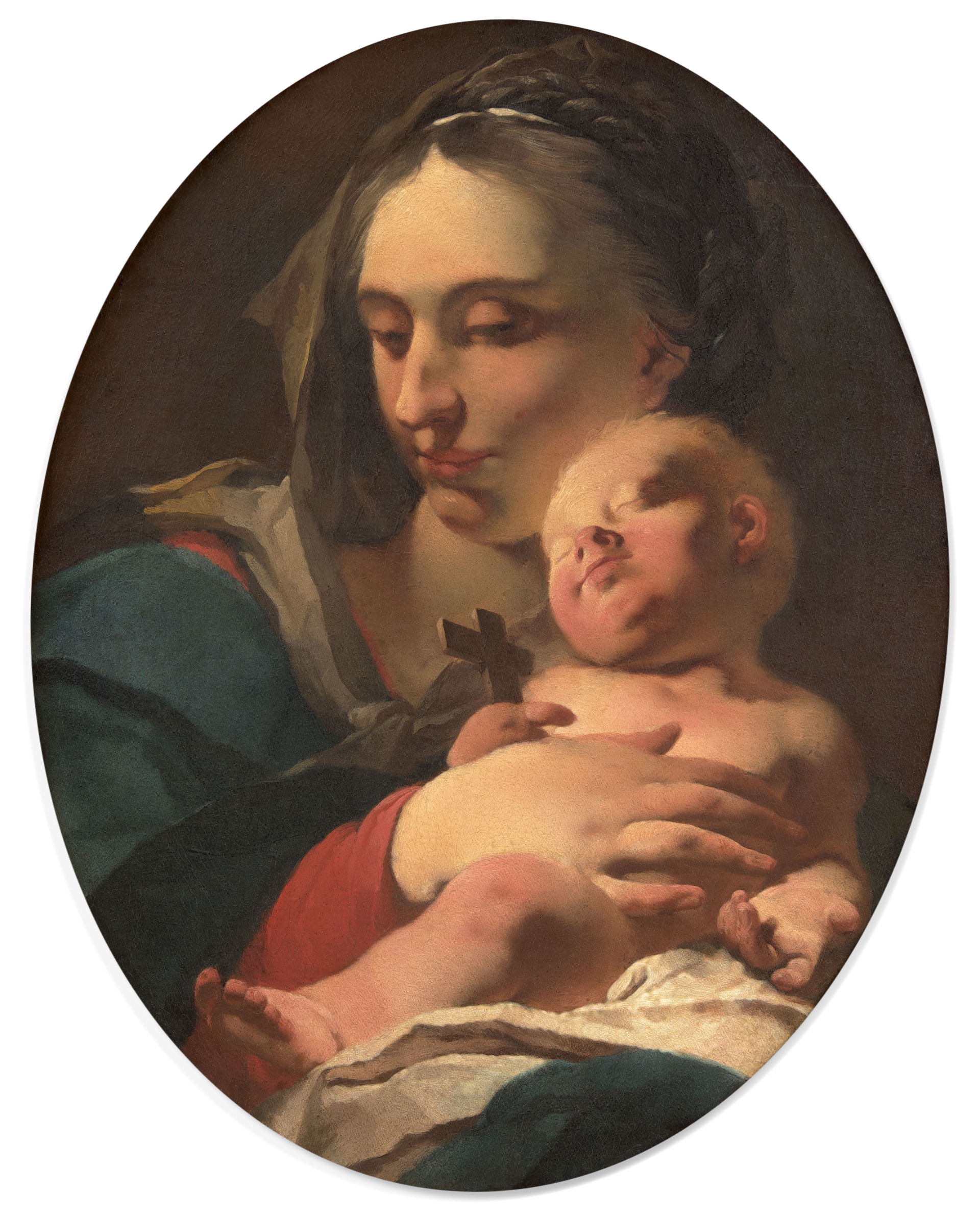 Forse non è proprio il Giovan Battista Tiepolo che uno vorrebbe, per la forma (l’ovale non piace mai), il tema (una Madonna con il Bambino addormentato mentre tiene stretta a sé la croce) e soprattutto l’epoca (il periodo giovanile, tra tutti il meno ricercato). Tuttavia il mercato degli Old Masters va così: bisogna accontentarsi di quello che passa il convento. Erano quasi trent’anni che non si rendeva disponibile questo dipinto (già nella mitica collezione veneziana di Italico Brass) che passa in asta il 4 marzo da Pichon & Noudel-Deniau a Cannes, alla stima di 60-80mila euro.