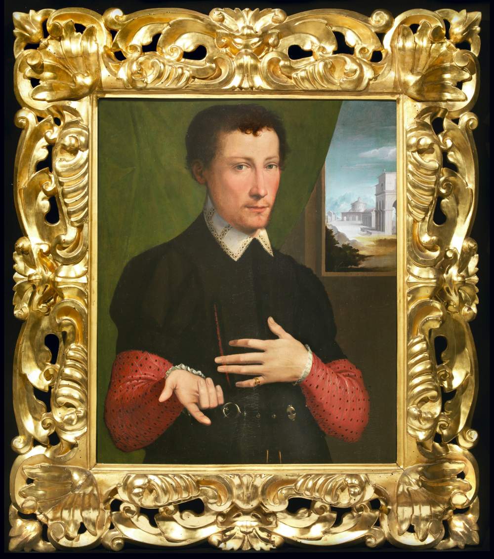 «Ritratto di giovane uomo», di Maso da San Friano, in una cornice dorata