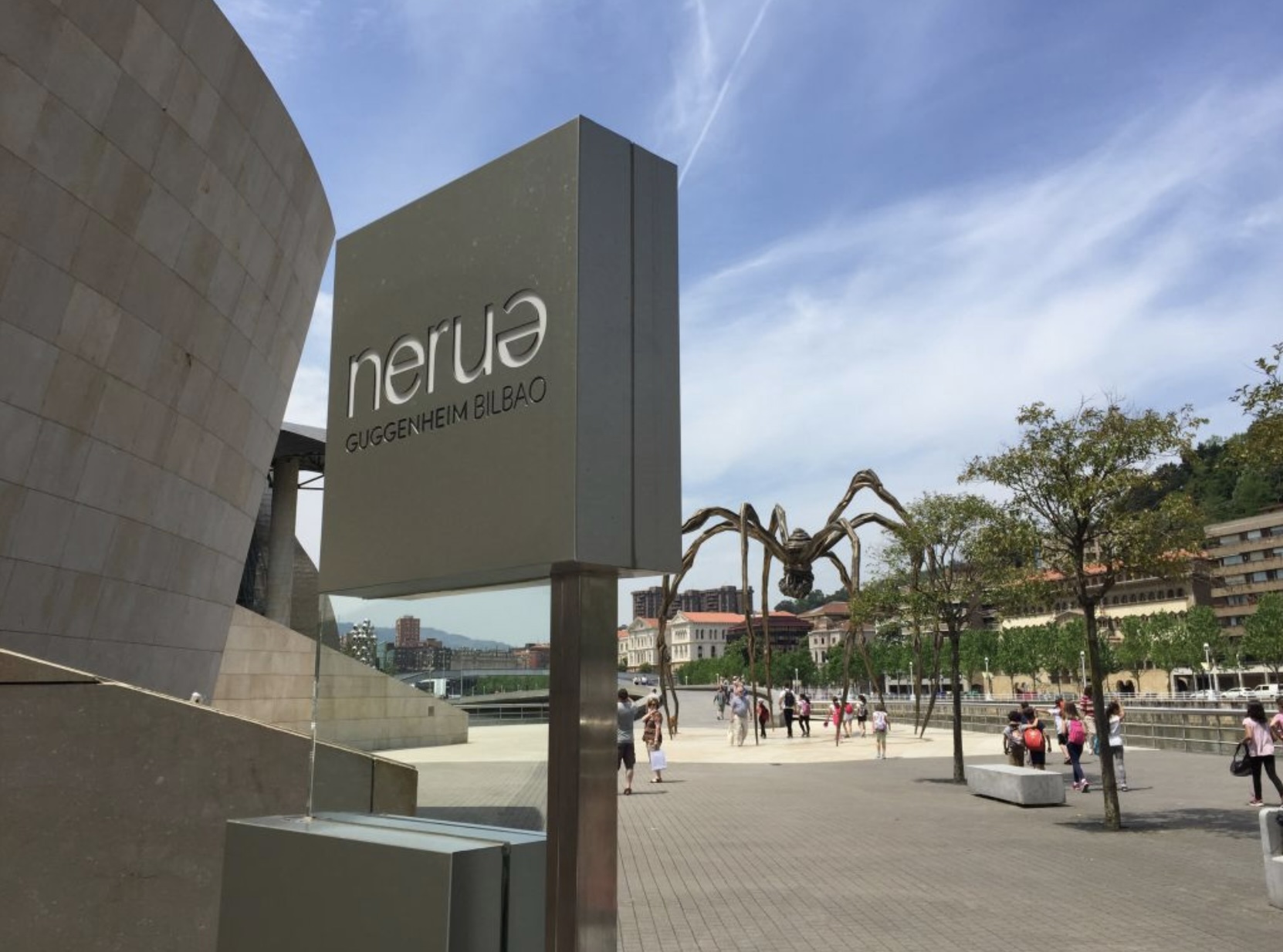 Una veduta dell’insegna del ristorante Nerua al Guggenheim Bilbao