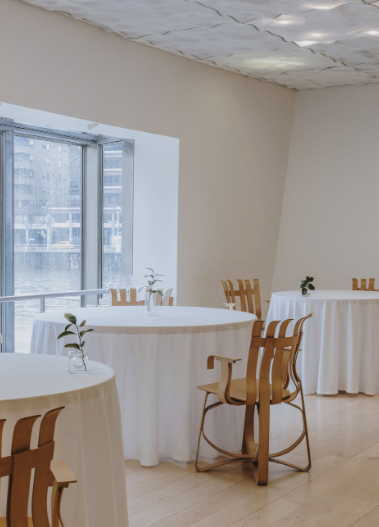 Nerua è uno spazio che riflette il mio modo di intendere la cucina e ciò che la circonda. È un luogo dalle forme e dall’architettura singolari: uno spazio puro e pulito che concentra l’attenzione su una tela bianca, il tavolo, e sul commensale. L’ingresso avviene attraverso la cucina stessa, dove si distilla l’essenza di ciò che siamo: un concetto umano, familiare e molto antico. Così era la vita nei casolari dei Paesi Baschi: tutto veniva fatto e celebrato in cucina. Lì si ha l’opportunità di vedere come lavora un team, meticolosamente come un’orchestra. Lo spazio è completato dall’arredamento di Frank Gehry (sedie e tavoli), dal grande tavolo della cucina e dalle posate su disegno di George Jensen, che contribuiscono all’armonia e all’esperienza sensoriale del commensale.