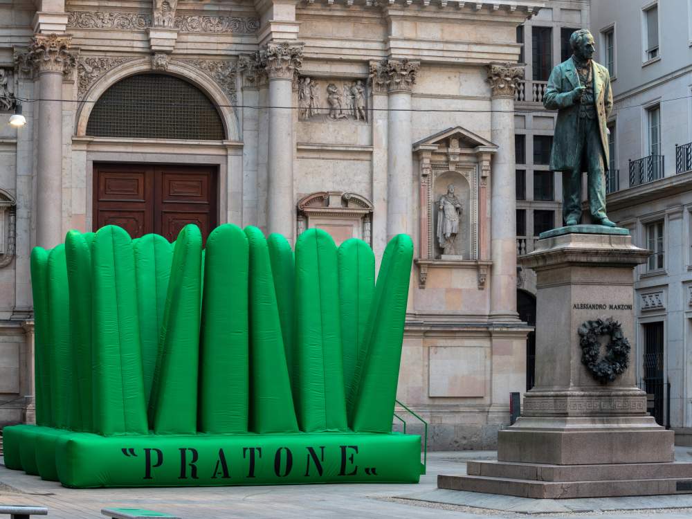 Il Super Pratone di Gufram in piazza San Fedele a Milano durante la Milano Design Week 2021. Foto Roberto Conte