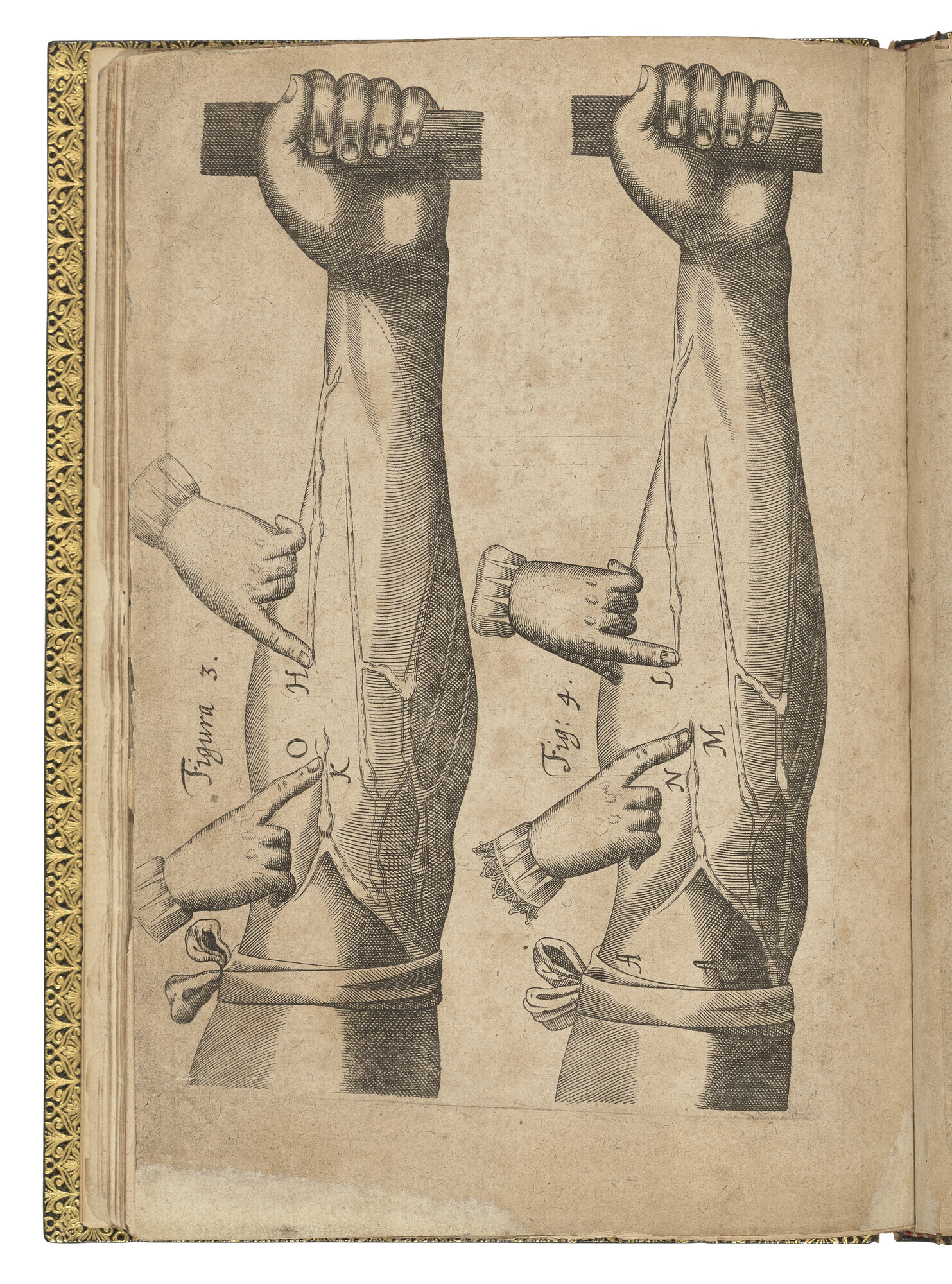 Exercitatio anatomica de motu cordis et sanguinis in animalibus (1628) di William Harvey. Courtesy of Cristie’s