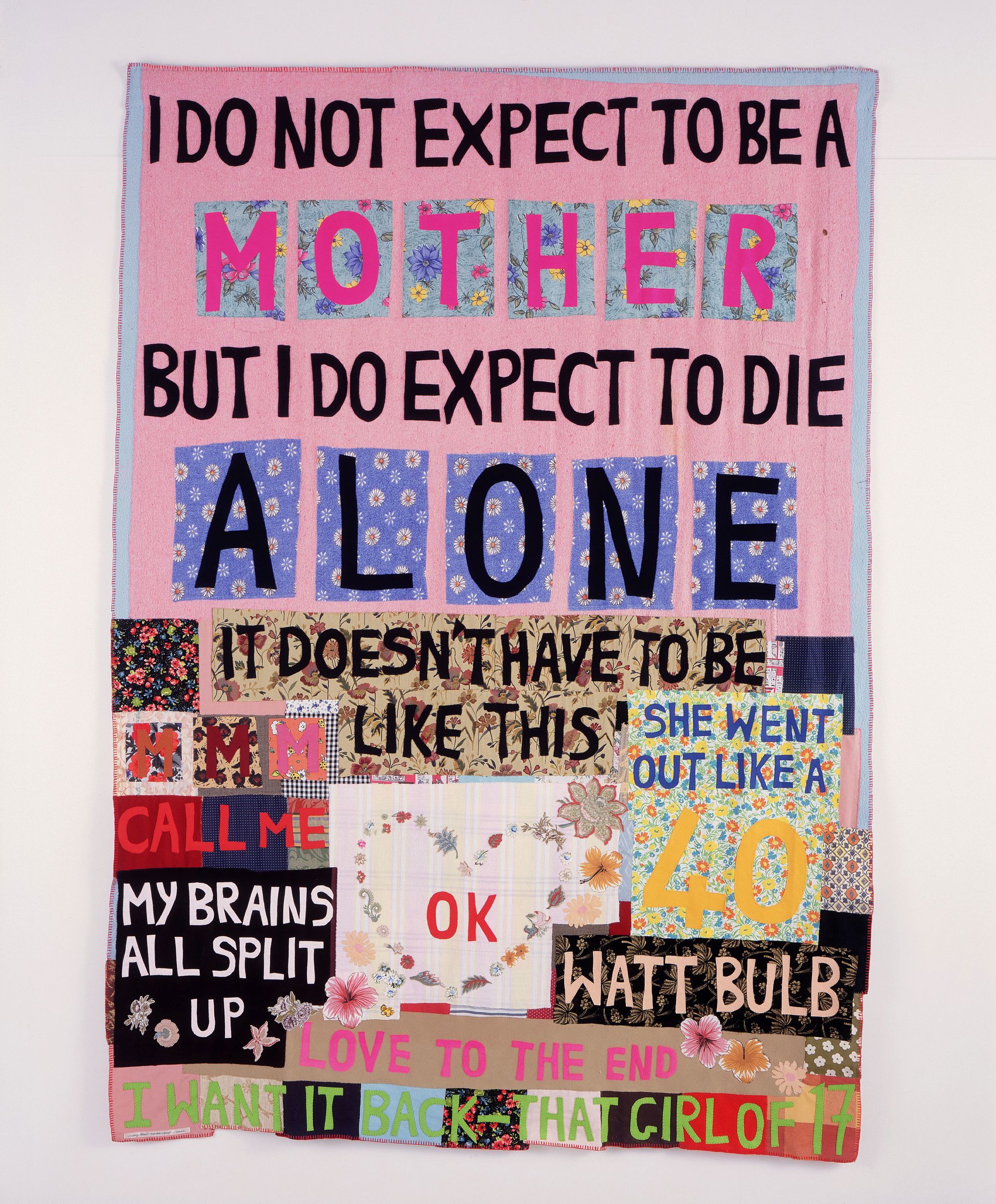 Nel mondo era il momento del diarismo estremo di Nan Goldin, delle operazioni di plastica facciale cui si sottoponeva Orlan, degli autoritratti en travesti di Yasumasa Morimura, sorta di analogo giapponese di Cindy Sherman, e della sua connazionale Mariko Mori. Alla Biennale del 1995 la mostra centrale, curata da Jean Clair, era un excursus storico intitolato «Identità e Alterità». Dopo il ritorno alla pittura, un altro movimento si opponeva dunque al lungo dominio della fobia da autoreferenzialità praticata dal Concettualismo. L’artista, autore e protagonista, tornava potentemente in scena. E con l’artista tornava attuale la manualità realizzativa: per Tracey Emin si trattò dapprima del cucito, poi della pittura. Oggi qualsiasi studentessa d’accademia in cerca di una certa attualità espressiva ricorre all’ago e filo; e l’arte tessile, ora decisamente debordante sul panorama del contemporaneo, era utilizzata soprattutto dalle artiste come richiamo a una di quelle attività domestiche attraverso le quali veniva identificato il ruolo della donna come angelo del focolare. Scrivere cose sconvenienti o produrre iconografie incentrate sul piacere sessuale attraverso il cucito e il ricamo era negli anni Novanta un gesto tutto sommato ancora interessante, e su questo terreno c’è chi ha accostato il lavoro di Tracey Emin a quello dell’egiziana Ghada Amer, entrambe appartenenti alla generazione della «cattive ragazze» del periodo.