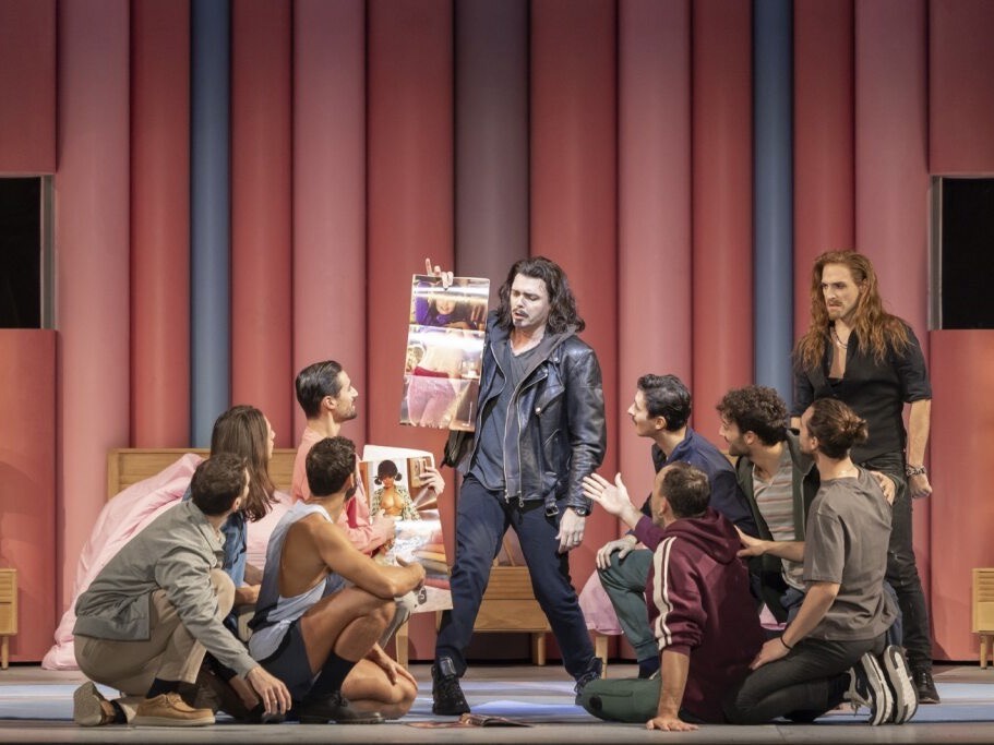 Don Alfonso, in fondo, ci ricorda il regista, «mette in scena un inganno per smascherarne un altro: vuole che questi ragazzi si sveglino, che imparino una lezione. Spesso ci innamoriamo di un’immagine che proiettiamo sull’altra persona, non di ciò che essa è davvero. Ecco, il problema nelle relazioni è accettare l’altro per ciò che è, non per ciò che vorremmo che fosse... Il tema del “chi siamo davvero” è una questione centrale per Mozart e Da Ponte. Ho pensato, continua il regista, di ambientare tutta la vicenda nel mondo della televisione. Come se i protagonisti fossero concorrenti di un reality show incentrato sull’amore: “Temptation Island”, “Love Island”, “Love is Blind ”e così via. I programmi televisivi e le piattaforme di streaming sono invase da format di questo tipo. Il nostro s’intitola "La Scuola degli Amanti". E mette alla prova le coppie, ne tenta la solidità, le espone a tentazioni per vedere che cosa succede. In questa chiave Don Alfonso e Despina diventano i conduttori dello show. E questo è molto attuale. Oggi il valore dell’amore è costantemente messo in crisi: viviamo in un mondo in cui si desidera diventare ricchi all’istante e più famosi possibile sui social, ottenendo visualizzazioni, like, click. È un universo dove il riconoscimento pubblico conta più della verità dei sentimenti, per quanto doloroso. Il mio compito, come regista, non è cercare un’equivalenza storica, ma rendere il materiale vivo e pertinente per chi la guarda oggi. Gli essere umani, in fondo, non sono cambiati: provano le stesse emozioni, le stesse fragilità. È cambiato il mondo intorno a noi, il modo in cui rapportiamo, le forme sociali e mediatiche dell’amore, della gelosia, della vergogna. In questo caso la chiave del reality televisivo mi è sembrata una via interessante».