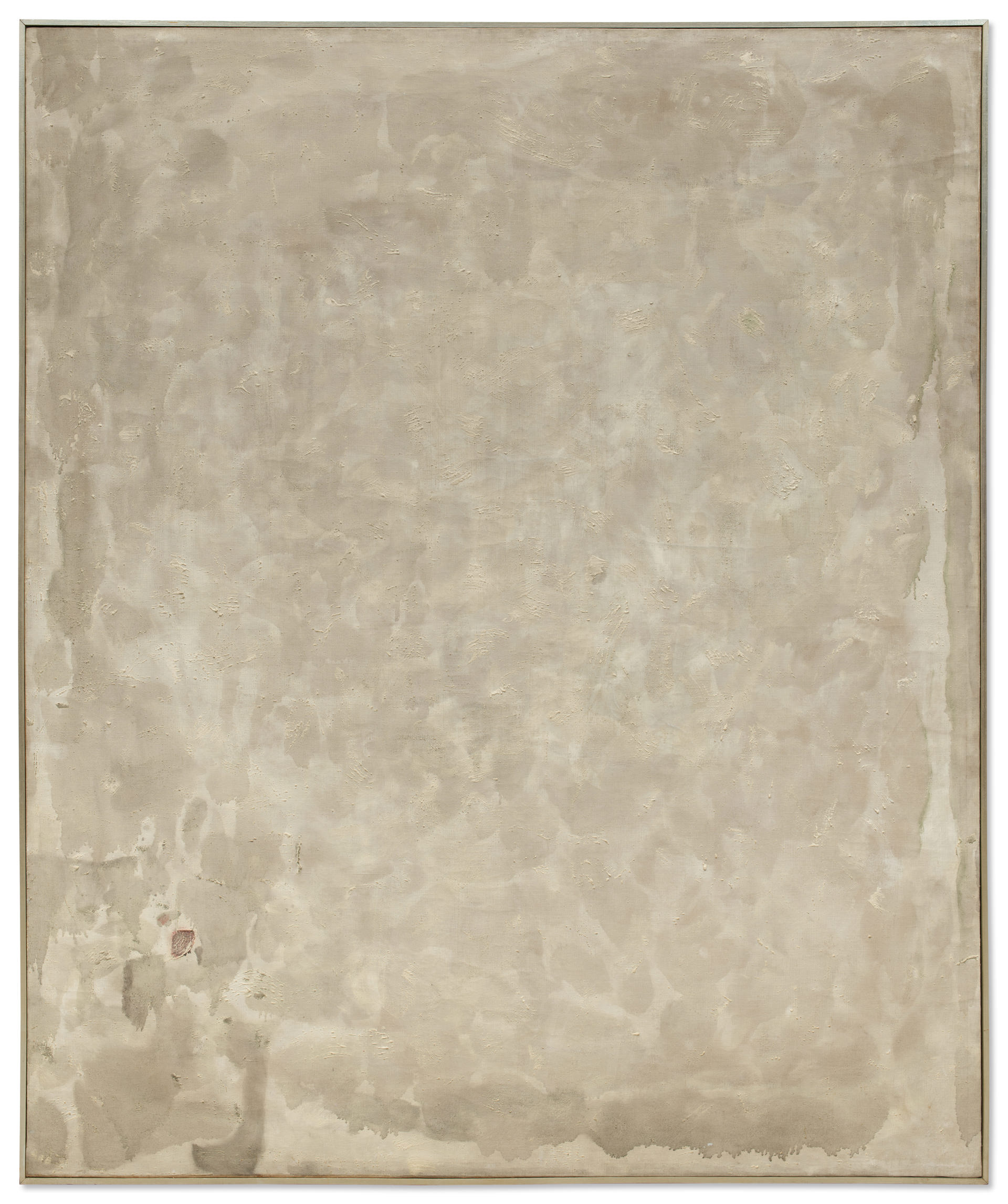 Completa il nucleo fontaniano «Concetto Spaziale» (1955), stimato 700 mila-1 milione di sterline. Rara variante della serie delle Pietre, l’opera incorpora frammenti di vetro di Murano direttamente nella superficie, attivando luce e texture e destabilizzando ulteriormente i confini tradizionali del campo pittorico. Accanto a Fontana si colloca Alberto Giacometti con «Femme debout» (concepita nel 1960 e realizzata nel 1964), stimata 2,2-2,8 milioni di sterline. La figura stante, allungata ed essenziale, incarna la ricerca di Giacometti su materia, scala e presenza, ed è una delle immagini più potenti della scultura del Novecento. Chiude la selezione Sam Francis con «Senza titolo» (1962), stimato 600-800 mila sterline. Appartenente alla celebre serie dei White Paintings e realizzato a Parigi, il dipinto utilizza ampie zone di bianco e delicate modulazioni cromatiche per evocare luce e atmosfera, segnando un momento decisivo nell’affermazione internazionale dell’artista come uno dei grandi coloristi del secondo dopoguerra.