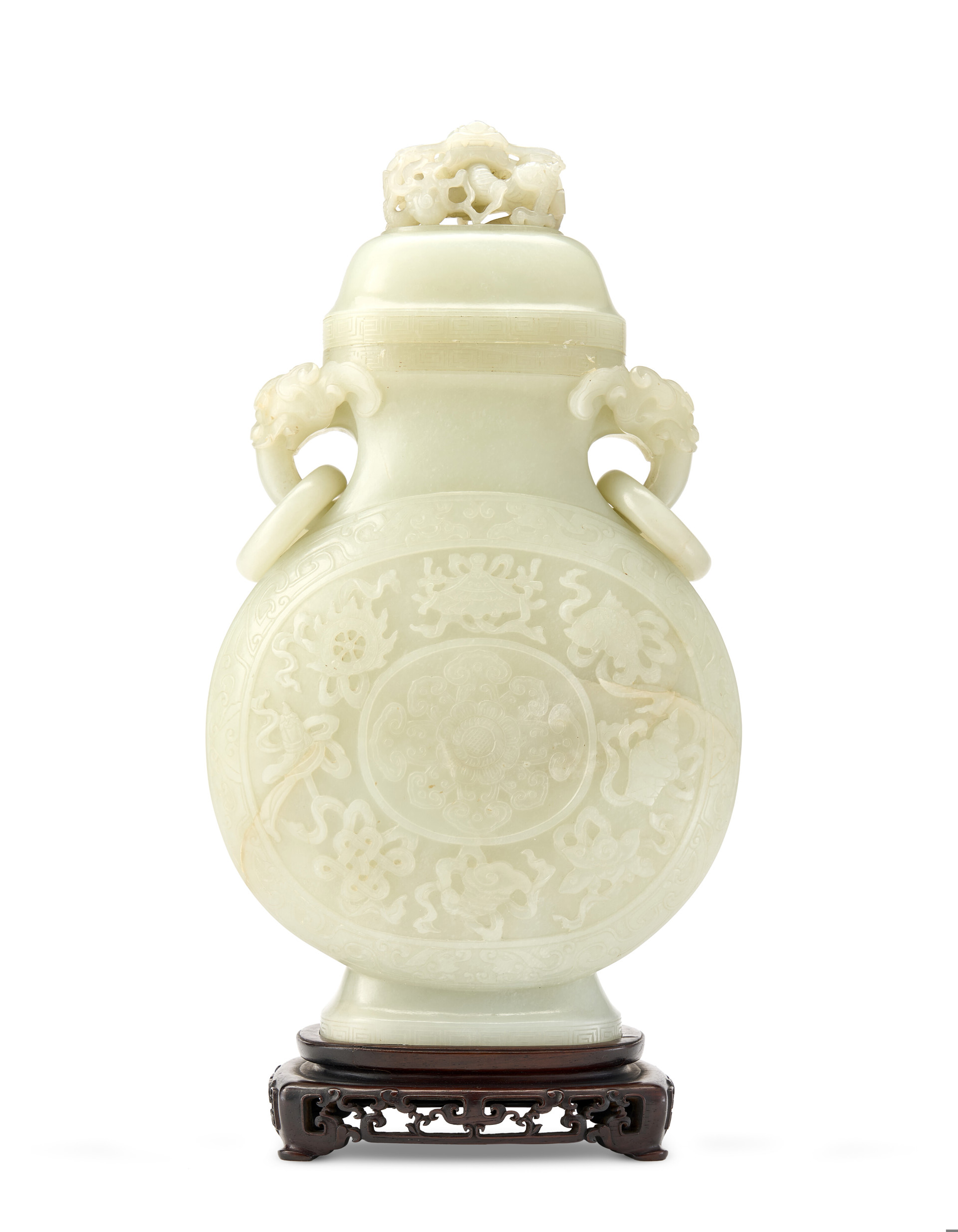 Grande moon-flask con coperchio in giada bianca, Cina, dinastia Qing (1644-1912). È stato aggiudicato il 30 ottobre 2024 da Il Ponte a Milano per 75mila euro