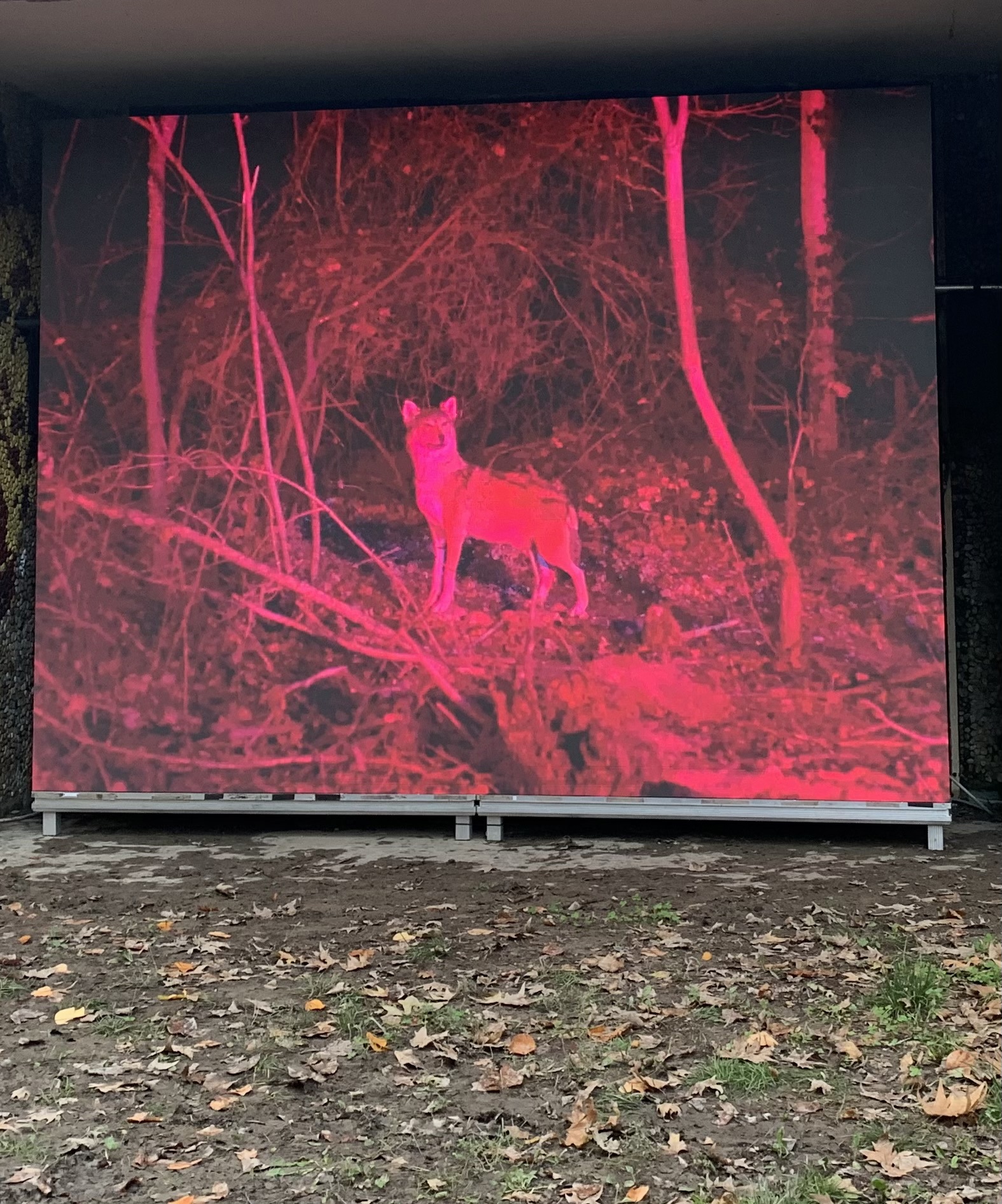 Un altro profondo dialogo con la città ha luogo nell’ex Zoo, in corso Casale 43, un magnifico parco immerso nel verde sulle sponde del Po. La presenza di uno zoo a Torino risale all’Ottocento, quando i Savoia avevano nei giardini reali uno zoo privato, parzialmente aperto al pubblico. Nel 1955 la Città di Torino decide di costruire uno zoo sulle sponde del fiume, con elefanti, scimmie, giraffe, tigri, leoni, animali acquatici e rettili. L’esperienza si conclude appena una trentina di anni più tardi, quando con una sensibilità piuttosto anticipatrice, a Torino si forma un movimento di protesta contro il disagio fisico e psichico degli animali reclusi in gabbie e recinti che porta, nel 1985, alla definitiva chiusura dello zoo giudicato un’esperienza fallita e fuori tempo massimo. Ne resta il parco naturalistico sulle sponde del Po, un’area protetta e sotto tutela con vari e importanti edifici in attesa di nuova destinazione d’uso. Tra questi l’ex rettilario di Ezio Venturelli, tra i più studiati e apprezzati architetti del Brutalismo torinese, allievo di Mollino. All’ingresso del parco, accanto al rettilario, in una nicchia di quella che era la casa delle giraffe, Artissima presenta il vide «Raised in the Dust» dell’artista georgiano Andro Erazde (Gallerie SpazioA). È un dialogo che funziona perfettamente con la storia del luogo e che indaga il rapporto tra uomo e animale e la modalità con cui ci rapportiamo alla cultura e selvatica. Il video è stato girato nella zona boschiva attorno alla città di Tbilisi, è uno scenario notturno nel quale appaiono immobili vari elementi, piante e animali selvatici come flash veloci che irrompono nel paesaggio. Finché a un certo punto il paesaggio si popola del chiasso visivo e sonoro di fuochi d’artificio che impattano sull’ambiente, la luce vira verso il verde e il rosso, suggerendo una dimensione apocalittica e «ribaltando l’aspetto sociale e di festa dei fuochi d’artificio in un trauma antropico che si abbatte su uno scenario boschivo determinandone una devastazione», spiega Fassi. A ben guardare gli animali sono immobili perché morti, tassidermizzati (proprio come quelli del Museo di Scienze Naturali). «La vita boschiva raccontata nel video è già adesso un ricordo del passato. Un’archeologia del presente che funzione per una qualsiasi città occidentale, anche per Torino, i suoi parchi e le sue colline», conclude Fassi.