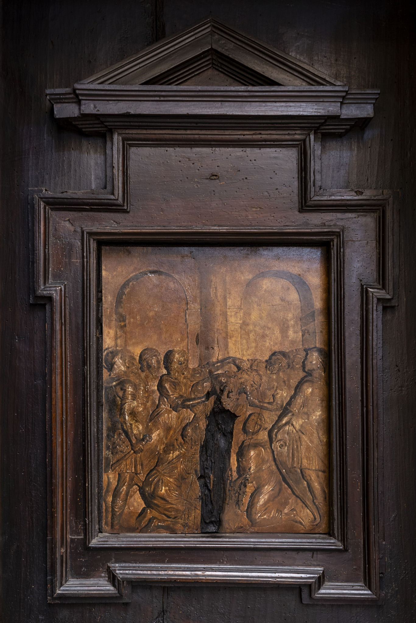 L’opera di Nicola Samorì ha coperto il vuoto lasciato dal furto di una formella lignea nella Chiesa di San Fedele