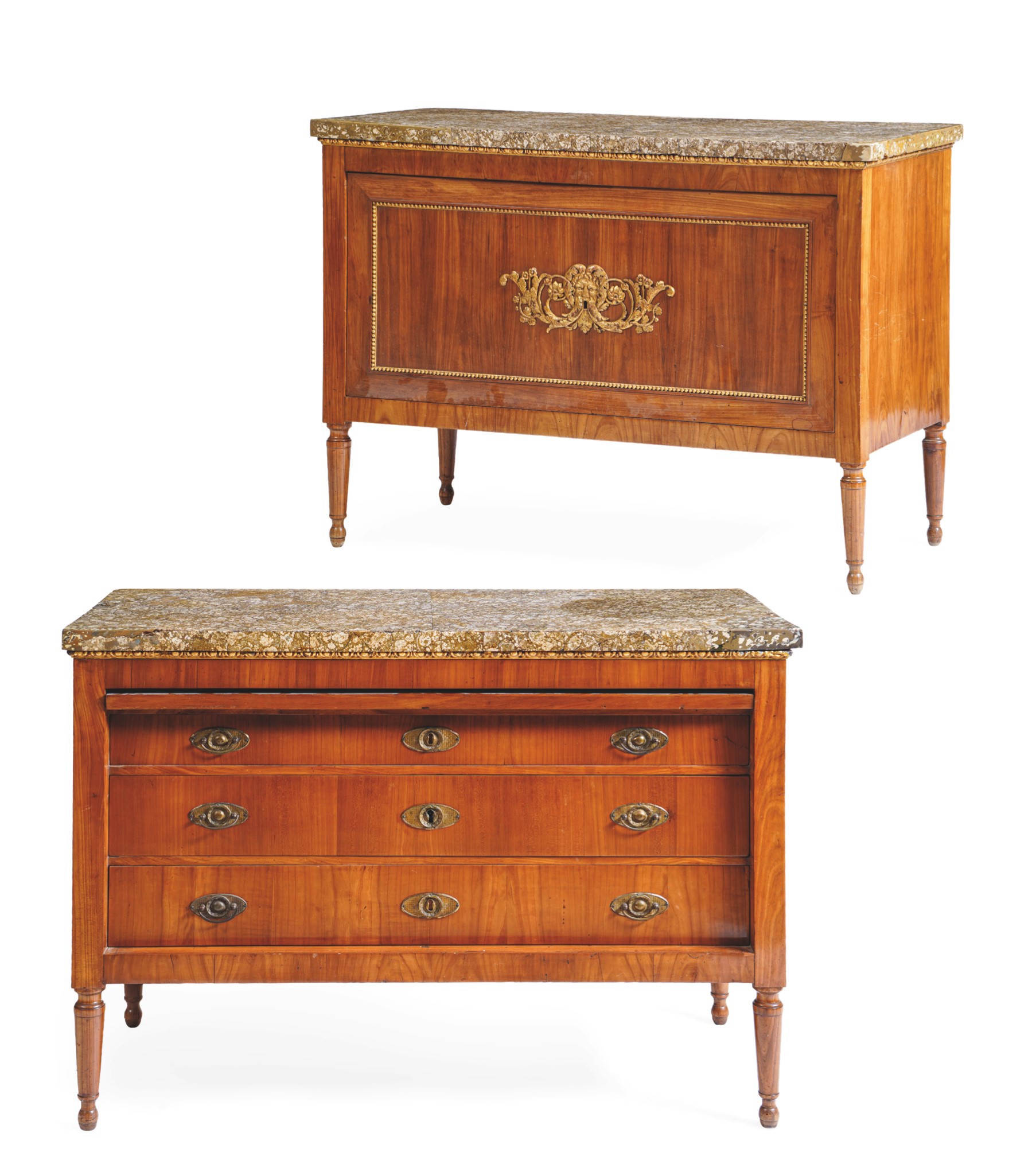Coppia di cassettoni lastronati, XVIII secolo. Courtesy Cambi casa d’aste