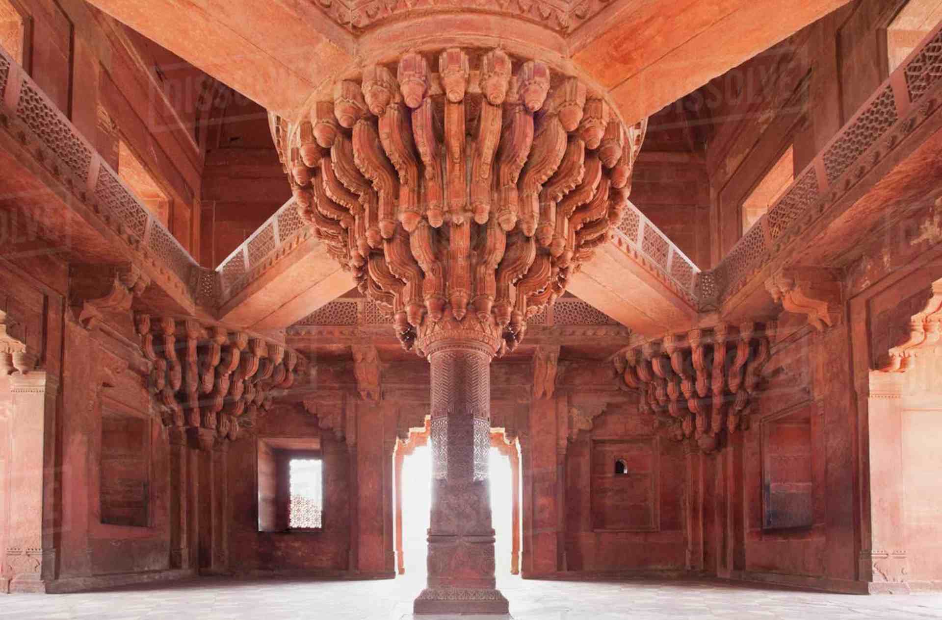 Nel 1815 uno dei primi governatori inglesi dell’India, Lord Rawdon, marchese di Hastings (1754-1826), avviò importanti lavori di restauro della città. I monumenti più importanti si trovano a nord dell’asse centrale, attorno al complesso dei palazzi imperiali, tra cui spicca il Panch Mahal, un edificio di cinque piani sostenuto da ben 176 colonne istoriate, e sormontato da un «chhatri» (padiglione sormontato da una cupola), probabilmente utilizzato dalle donne della corte imperiale. Il Jodha Bai Mahal, palazzo della consorte favorita di Akbar (e madre di Jahangir) Mariam-uz-Zamani, collegato internamente con il palazzo dell’imperatore, è caratterizzato da una tipologia a corte di ispirazione Rajput, e ha all’interno anche un tempio induista. Gli edifici dedicati alle udienze sono due: uno per le udienze pubbliche, il Diwan-i-Aam, un padiglione rettangolare posto davanti a un vasto spazio pubblico, e uno per le udienze private, il Diwan-i Khas, un edificio a pianta quadrata con quattro «chhatri» ai lati, al cui interno è una piattaforma circolare sostenuta da una grande colonna, collegata ai quattro angoli dell’edificio con passerelle in pietra, che serviva ad Akbar per i suoi incontri politici privati.
