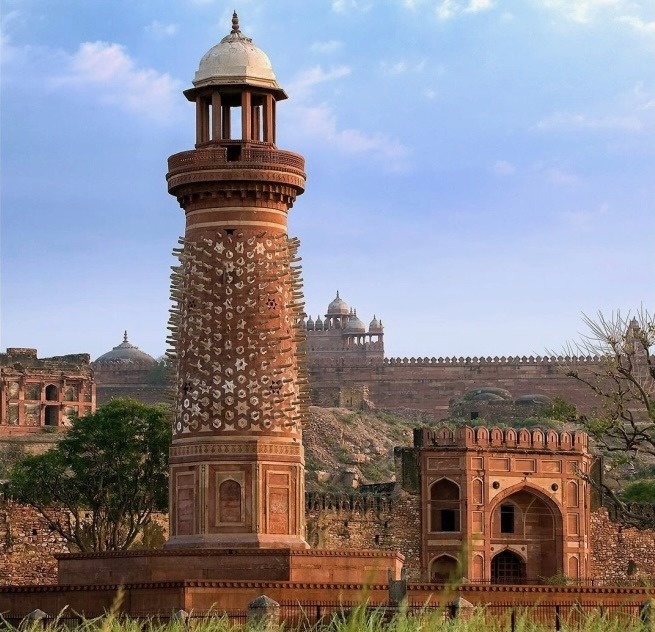 Il Buland Darwaza è la porta meridionale della città e con i suoi 54 metri di altezza è considerata la più alta del mondo. Ha una pianta semiottagonale, con archi monumentali e un arco centrale, il tutto posto su una grande piattaforma circondata da una scalinata di 42 gradini. La Jama Masjid (Moschea del venerdì), uno dei primi edifici realizzati nella città, è costruita sul modello delle moschee indiane con gli «iwans» (ambienti sormontati da un arco) disposti attorno a una corte centrale, e una serie di «mirhab», di cui quello centrale coperto da una cupola. All’interno del cortile della moschea vi è la Tomba di Salim Chishti, una struttura a un piano formata dalla camera sepolcrale del santo circondata da un deambulatorio coperto. Completa questo straordinario complesso di monumenti un singolare minareto, il Hiran Minar detto anche Torre dell’Elefante, una torre circolare avvolta da blocchi di pietra protrudenti a forma di zanna di elefante. Oggi la città, iscritta nella Lista del Patrimonio mondiale nel 1983, è stata in gran parte restaurata ed è diventata un’importante meta turistica.