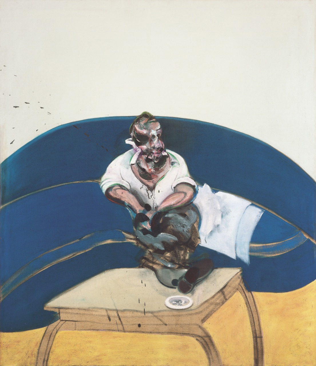 Il cinquantasettenne Bacon, ai tempi di quell’intervista (era il 1966), aveva già all’attivo le opere chiave della sua produzione. Una di esse è «Crocifissione» (1933), una sorta di carcassa animale che Herbert Read aveva pubblicato nel suo libro Art Now ed esposto nell’omonima mostra collettiva alla Mayor Gallery di Londra. «Tre studi per figure alla base di una Crocifissione», dipinto intorno al 1944 ed esposto l’anno seguente alla Lefevre Gallery di Londra, che Raymond Mortimer, critico di «News Statesman and Nation», recensì con queste parole: «Sembrano derivate dalla “Crocifissione” di Picasso, ma ulteriormente distorte con colli di struzzo e bottoni che sporgono da borse: l’effetto complessivo è cupamente fallico». Del 1946 è «Painting», che Graham Sutherland, collega e all’epoca amico di Bacon, consigliò a Erica Brausen (un’artista più nota come agente per la Redfern Gallery) che lo acquistò per 200 sterline. La scheda del catalogo online del MoMA di New York (che l’acquistò per 280 sterline nel 1947 dalla stessa Brausen) dov’è ora conservata l’opera, la descrive così: «Un’immagine indiretta, ma minacciosa, di un anonimo personaggio pubblico. L’ombrello che lo oscura parzialmente potrebbe riferirsi a Neville Chamberlain, il primo ministro britannico dell’anteguerra che era noto per portarne uno (…). La sua smorfia dentale suggerisce una profonda brutalità sotto l’apparenza corretta». Bacon ne parlò più semplicemente come «quel quadro che sembra una macelleria [e che] mi è venuto fuori per caso. Stavo tentando di rappresentare un uccello che si posa su un campo (…) l’uccello ha di colpo suggerito l’intera immagine».