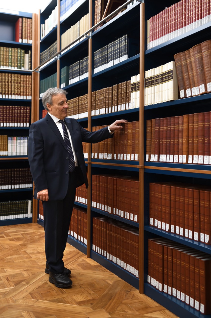 Franco Signoretti nella sua biblioteca d’arte in Palazzo Perticari Signoretti