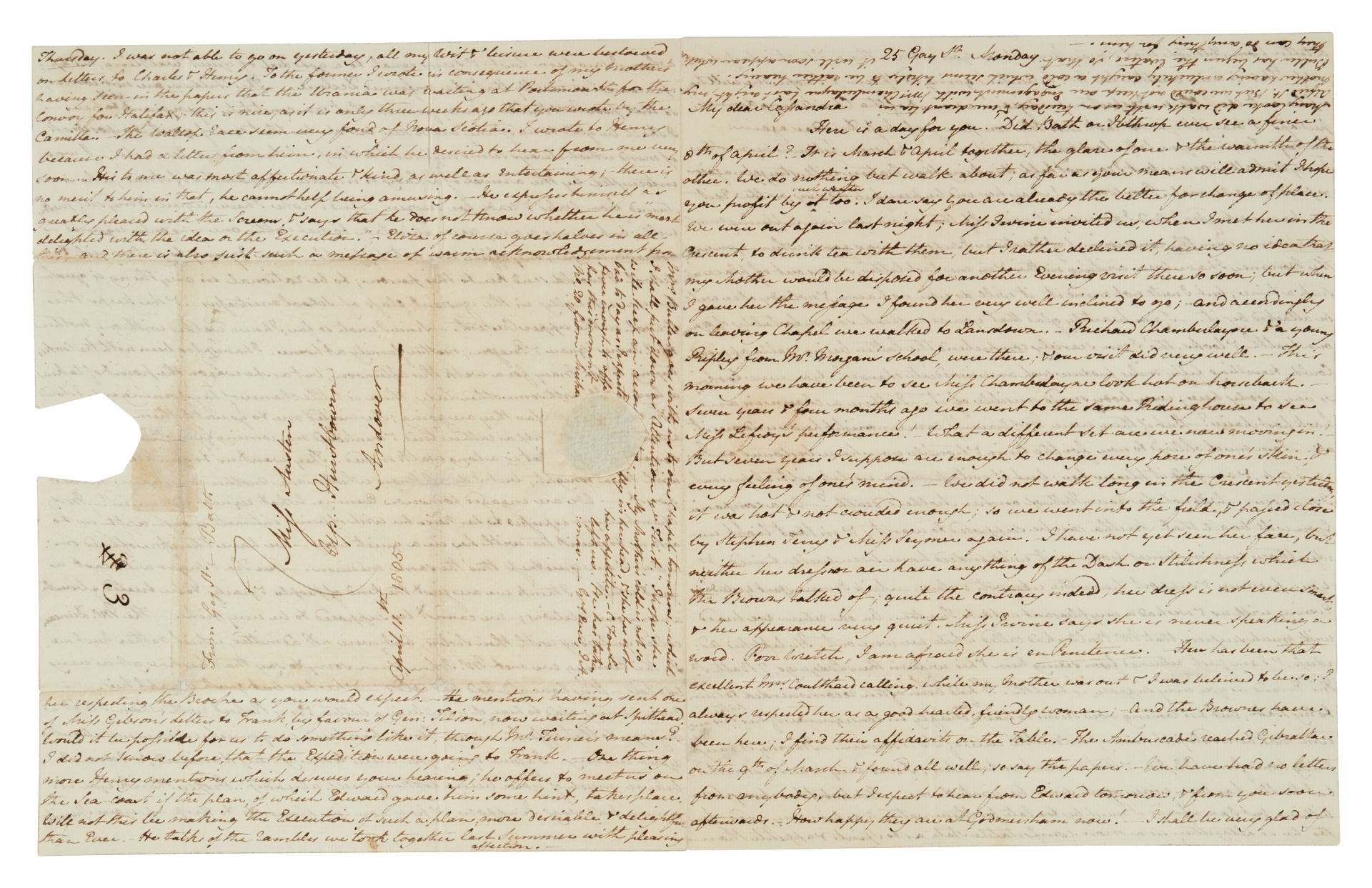 Jane Austen, Lunga e intima lettera autografa firmata («JA»), indirizzata a Cassandra Austen. Courtesy of Bonhams
