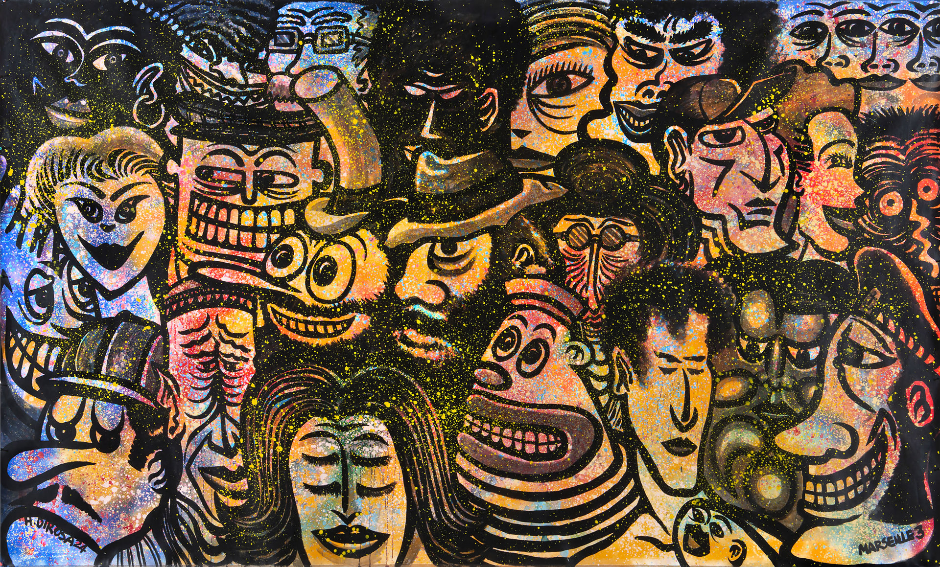 Coetaneo dei graffitisti storici Haring, Basquiat e Kenny Scharf, Di Rosa è stato tra i primi a imporre il fumetto come linguaggio dotato di una sua potenza «artistica». E se di Alighiero Boetti viene esaltato il superamento del mito dell’autorialità attraverso la collaborazione con artigiani afghani, il suo collega francese ha tramutato la collaborazione artigianale in qualcosa che conferisce all’arte un carattere profondamente collettivo, individuando nell’opera popolare e, appunto, collettiva, la portatrice e la testimone della storia dell’uomo oltre che della storia dell’arte. Nipote ancora più ribelle dei suoi antenati Dada e Fluxus, Di Rosa, che si definisce orgogliosamente comunista, ha cercato e ottenuto il dialogo (e il coinvolgimento) con un pubblico ben più ampio di quello tradizionalmente attento all’arte contemporanea, anticipando, anche in questo, quell’apertura raggiunta parzialmente solo negli ultimi vent’anni dal sistema museale ed espositivo. Lo abbiamo intervistato mentre al Mucem-Musée des civilisations de l’Europe et de la Méditerranée di Marsiglia è in corso sino al primo settembre la mostra «Hervé Di Rosa. Un air de famille».