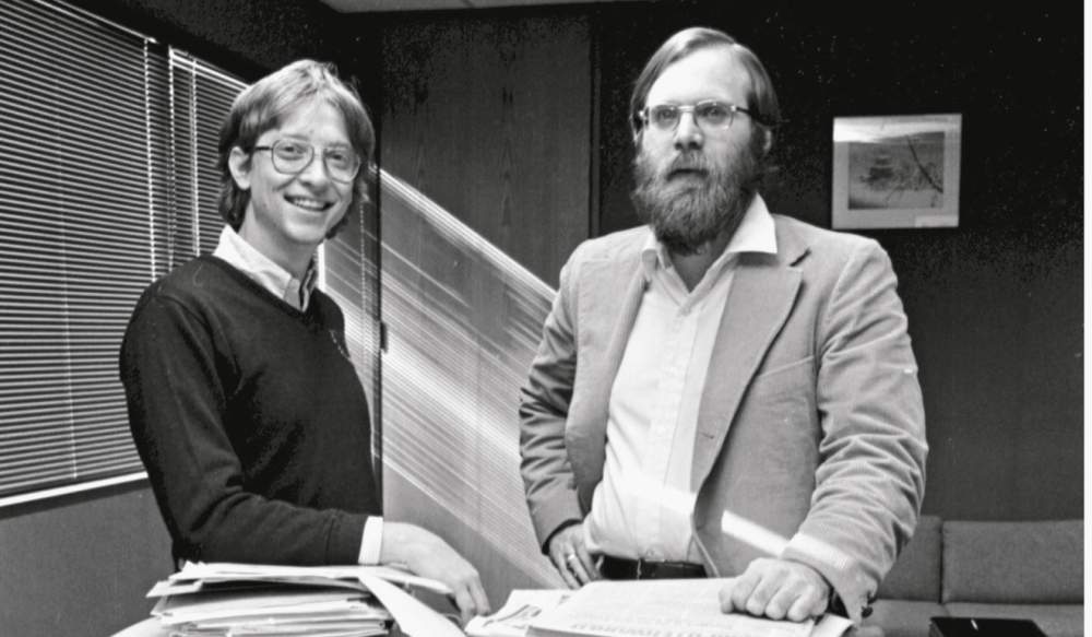 I giovani fondatori di Microsoft, Bill Gates (1955) e Paul Allen (1953-2018)