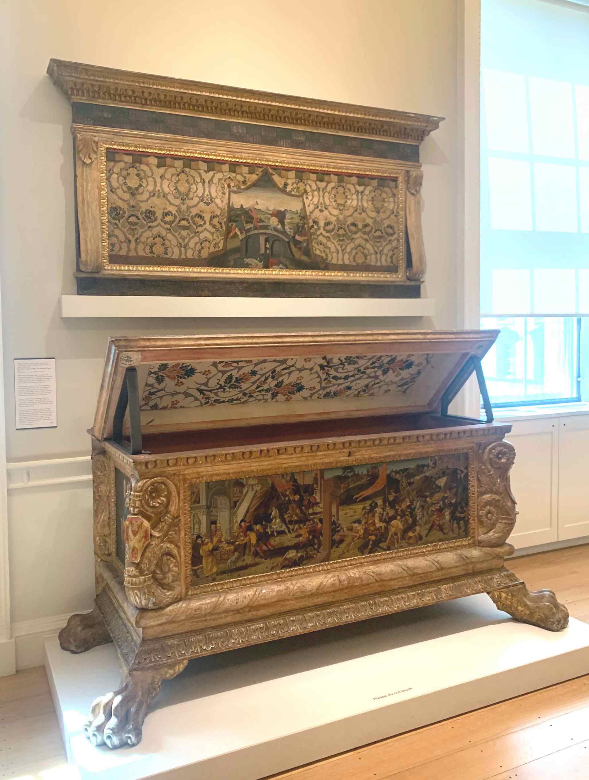 L’attività della famiglia era rivolta alla produzione di argenti e questo impegno si protrasse, di padre in figlio, fino alla fine del XVIII secolo, così una grande vetrina è dedicata agli argenti realizzati dai Courtauld in stile rococò. I più bei «cassoni» scolpiti, dorati e dipinti, con alzata, del pieno rinascimento fiorentino ancora esistenti sono la coppia che si trova in questo museo-boutique nella sala centrale al primo piano, di fronte alla grande «Trinità» di Botticelli, dipinti sul fronte e sulla parte superiore con episodi della vita di Marco Furio Camillo, eseguiti da Biagio di Antonio, Jacopo del Sellaio e Zanobi di Domenico nel 1472 per il matrimonio di Lorenzo Morelli con Vaggia di Tanai de’ Nerli.