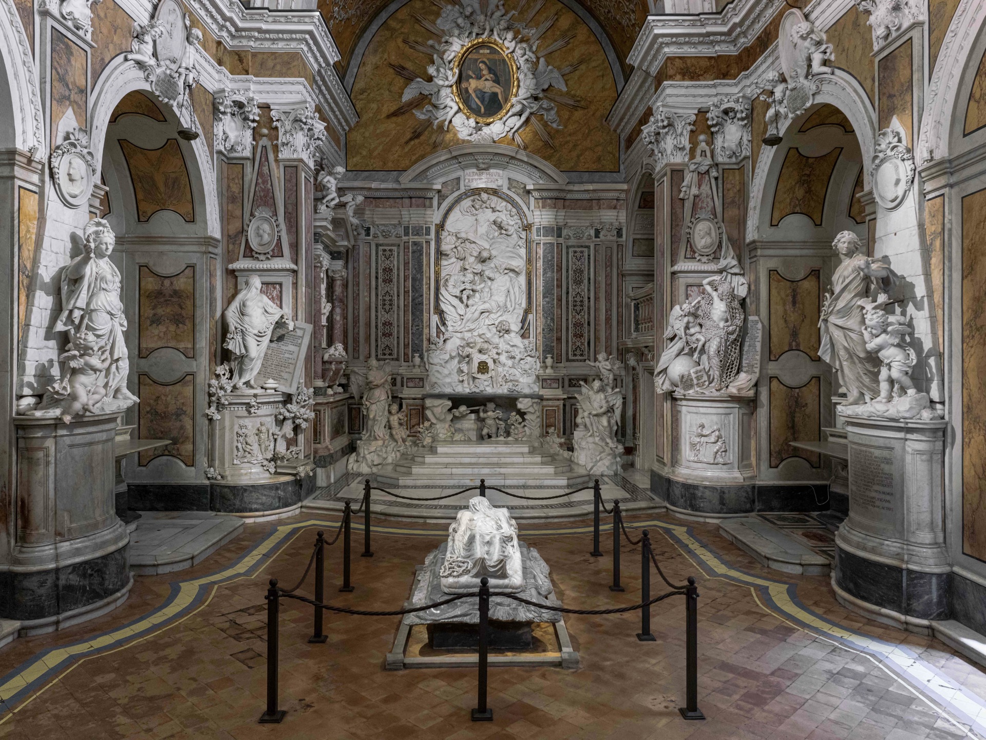 La Cappella Sanseverocon il centro il «Cristo velato» di Giuseppe Sanmartino. Foto Raffaele Aquilante e Alessandro Scarano per 327Collective