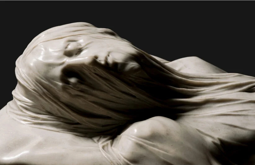 Quasi al centro di un sacello congegnato per le passioni erudite di un committente esigente, il «Cristo velato», all’altezza del 1753, è campione di un virtuosismo che si declina in modo diverso che nei gruppi scultorei alla Borghese un secolo e passa prima. Il trattamento del marmo valorizza le forme occultandole, secondo un processo che ricorda il cinema soft core dove la procacità (femminile) viene ostentata nel momento in cui la si stringe e costringe in una camicetta bagnata. Anche Christo velava i monumenti per svelarli.