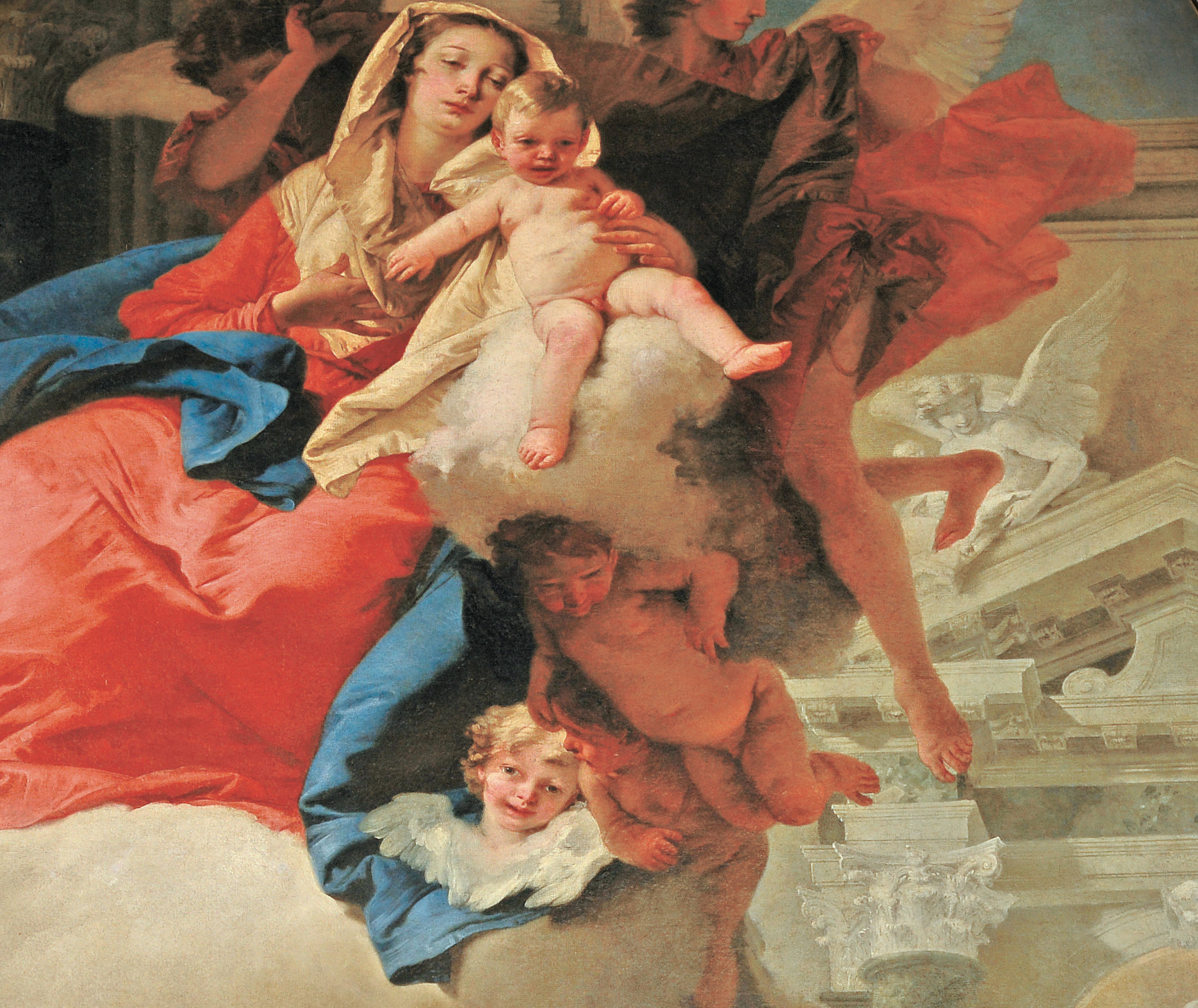Giovan Battista Tiepolo, «Apparizione della Madonna con il Bambino a san Filippo Neri», 1739-40, Museo diocesano di Camerino, proveniente dalla chiesa di San Filippo (particolare). Archivio fotografico del Museo