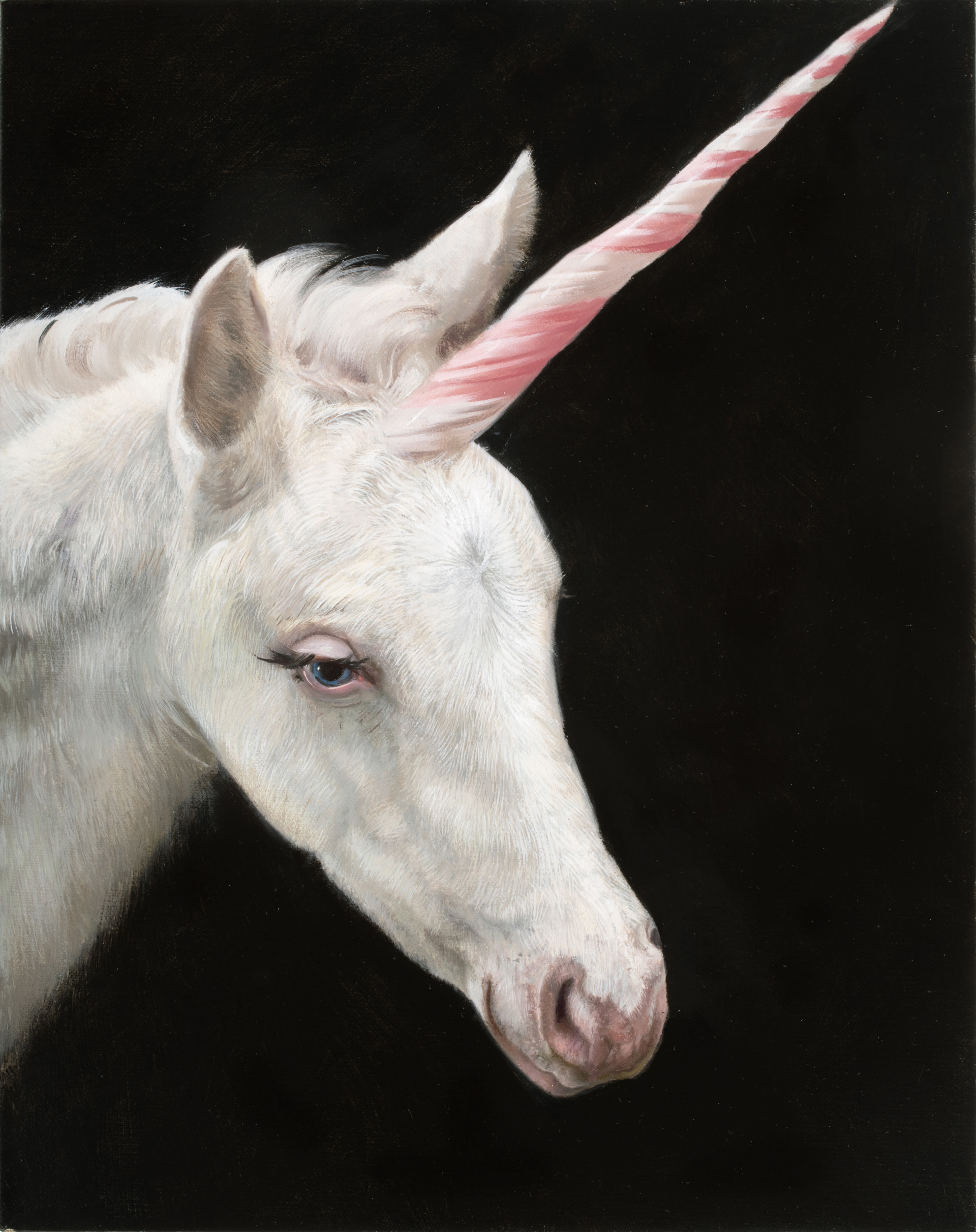 Di segno diverso, ma altrettanto emblematico, «Uomo a cavallo» (1982) di Fernando Botero. Una scultura in bronzo perfettamente bilanciata, dove il cavallo è compagno nobile e fedele dell’uomo. Un’immagine che dialoga con la tradizione spagnola, da Velázquez a Goya, filtrata attraverso il linguaggio volumetrico inconfondibile di Botero. Lo sguardo americano emerge invece nei lavori di Will Cotton. In «Serene» (2025) il cavallo si trasforma in unicorno, creatura soprannaturale immersa in un’estetica di dolcezza estrema. Un’immagine iperrealistica, seducente e allo stesso tempo disturbante, che riflette sull’eccesso e sull’immaginario collettivo contemporaneo.