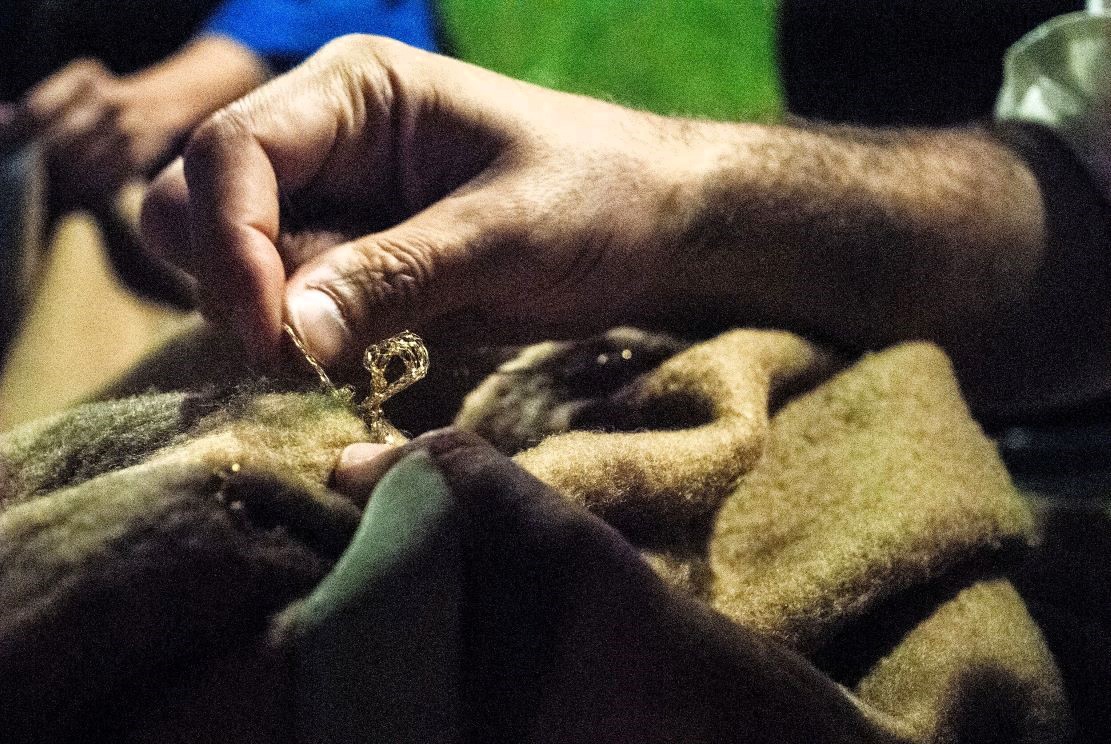 Il progetto è stato abbracciato da molte realtà: la Caritas Diocesana di Catania, che ha recuperato le coperte rispettando le mie linee cromatiche; Fermento Urbano, che ha messo a disposizione la sua rete; Economia Circolare (ODV) e Ballon Project, che è diventato media partner sul territorio. Dopo il corteo, che si apriva con lo striscione con la scritta “No al genocidio, fermiamo Israele”, in sostegno alla Global Sumud Flotilla, ci siamo messi in cerchio — dieci sedute — e abbiamo ricamato su tre coperte: la domanda su un tessuto bianco e su altre due coperte le frasi: “Il cielo della Palestina è uno specchio di speranza nonostante le nuvole” e una citazione del poeta Marwan Makhoul:
