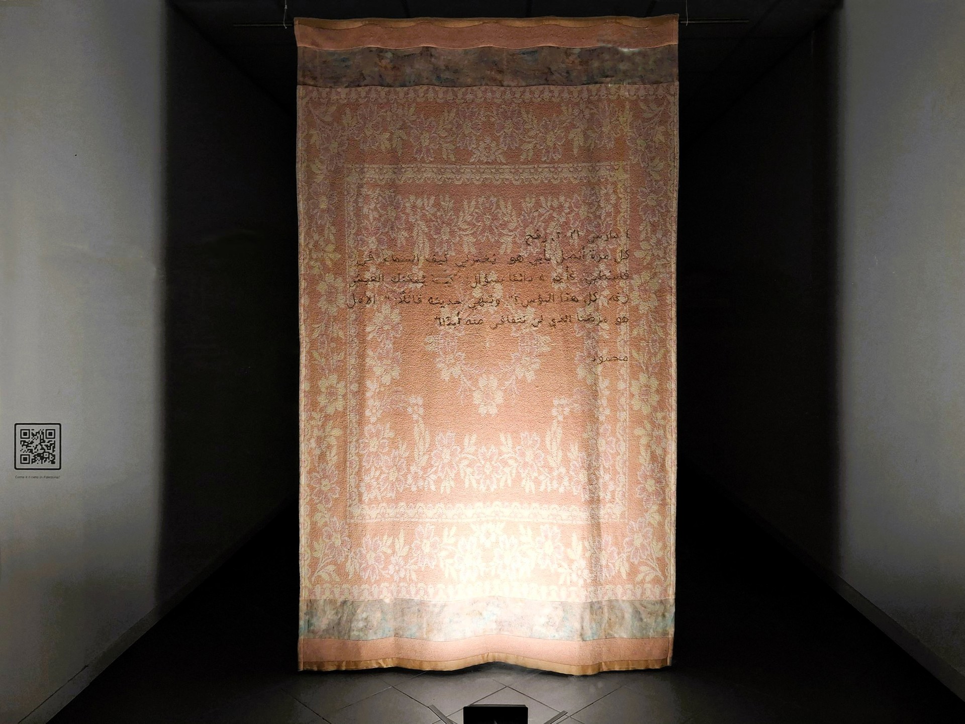Questo testo è stato effettivamente ricamato su una seconda coperta, ora ospitata a Cremona, negli spazi di It’s Hard Noise, in una sorta di doppia personale insieme al collettivo di videoartisti e animatori Palestina Animada.