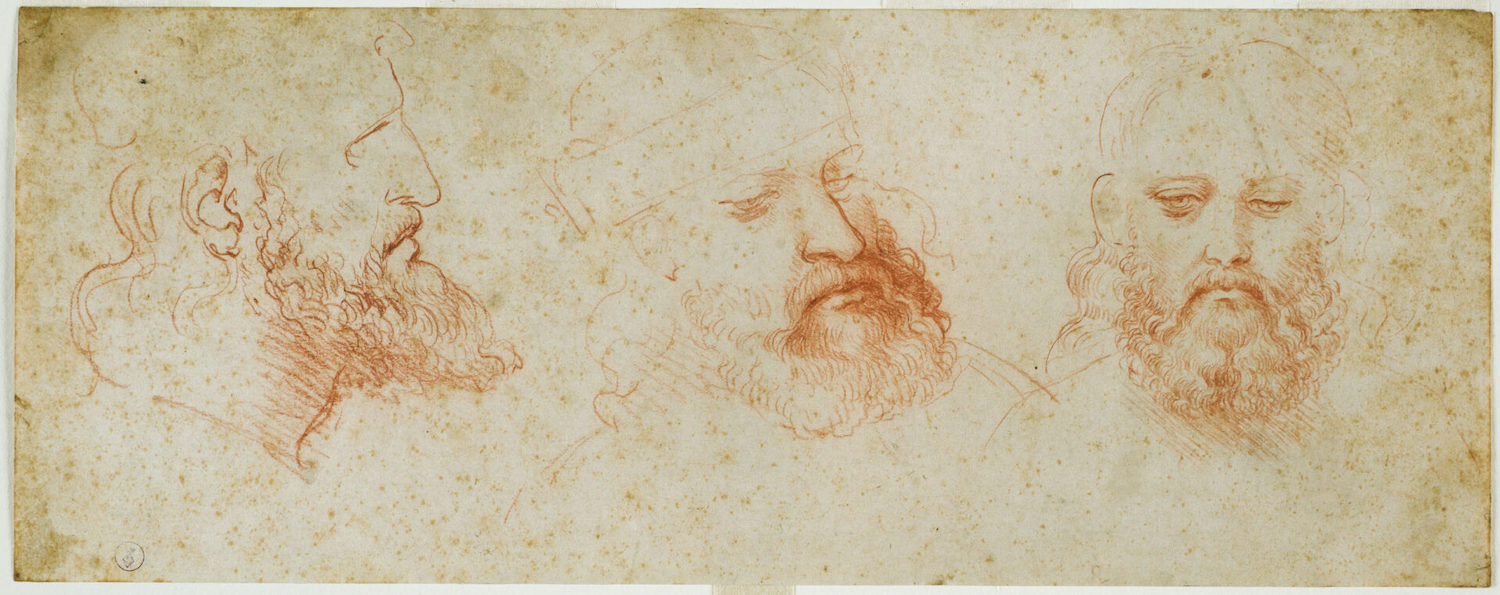 Leonardo da Vinci, «Tre vedute di testa virile con barba». Torino, Biblioteca Reale. Foto: Musei Reali di Torino