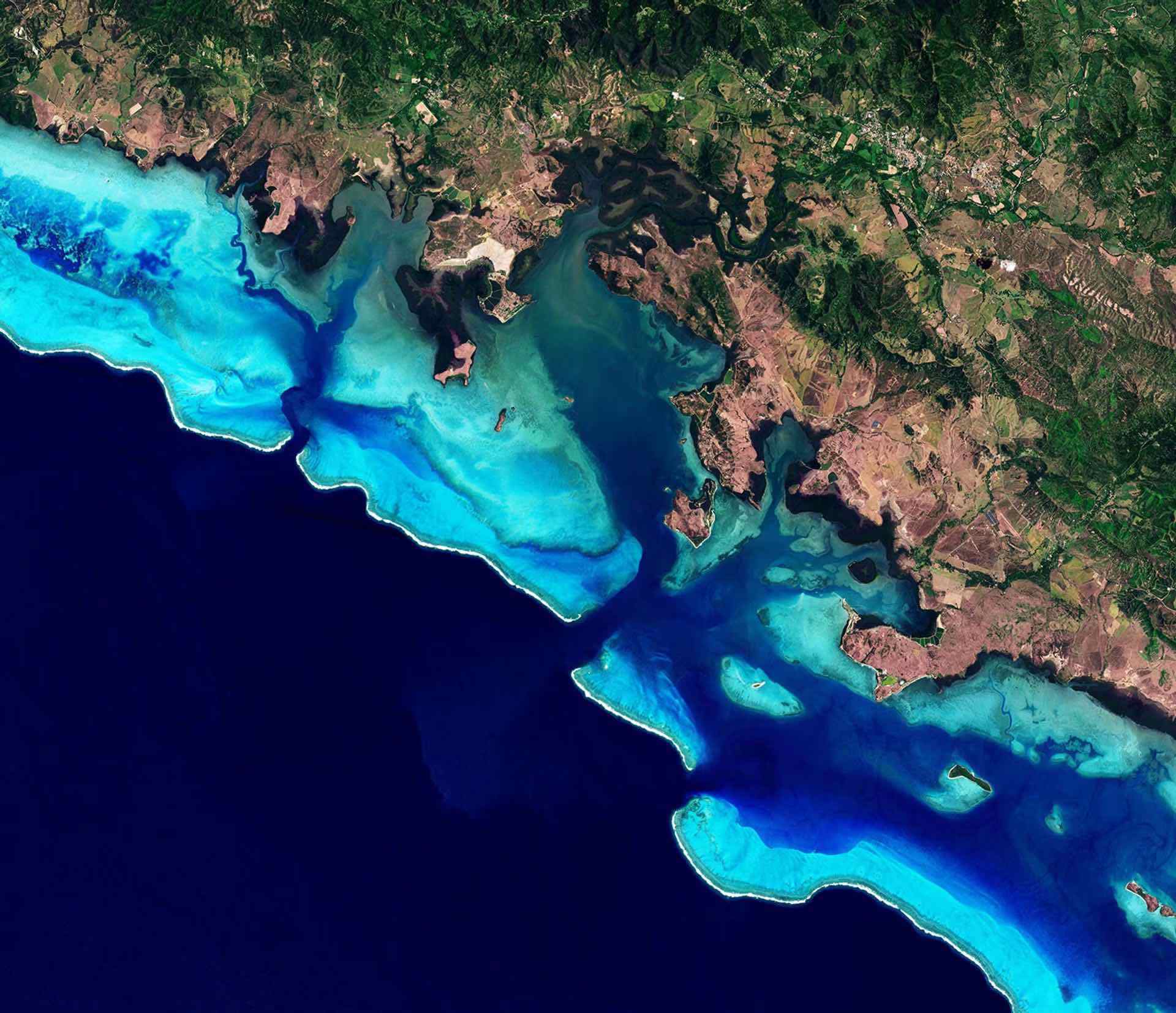 Un’immagine satellitare della Nuova Caledonia scattata da Planet Labs, uno dei partner fondatori di HeritageWatch.AI, per un progetto Unesco esistente. Per gentile concessione di Planet