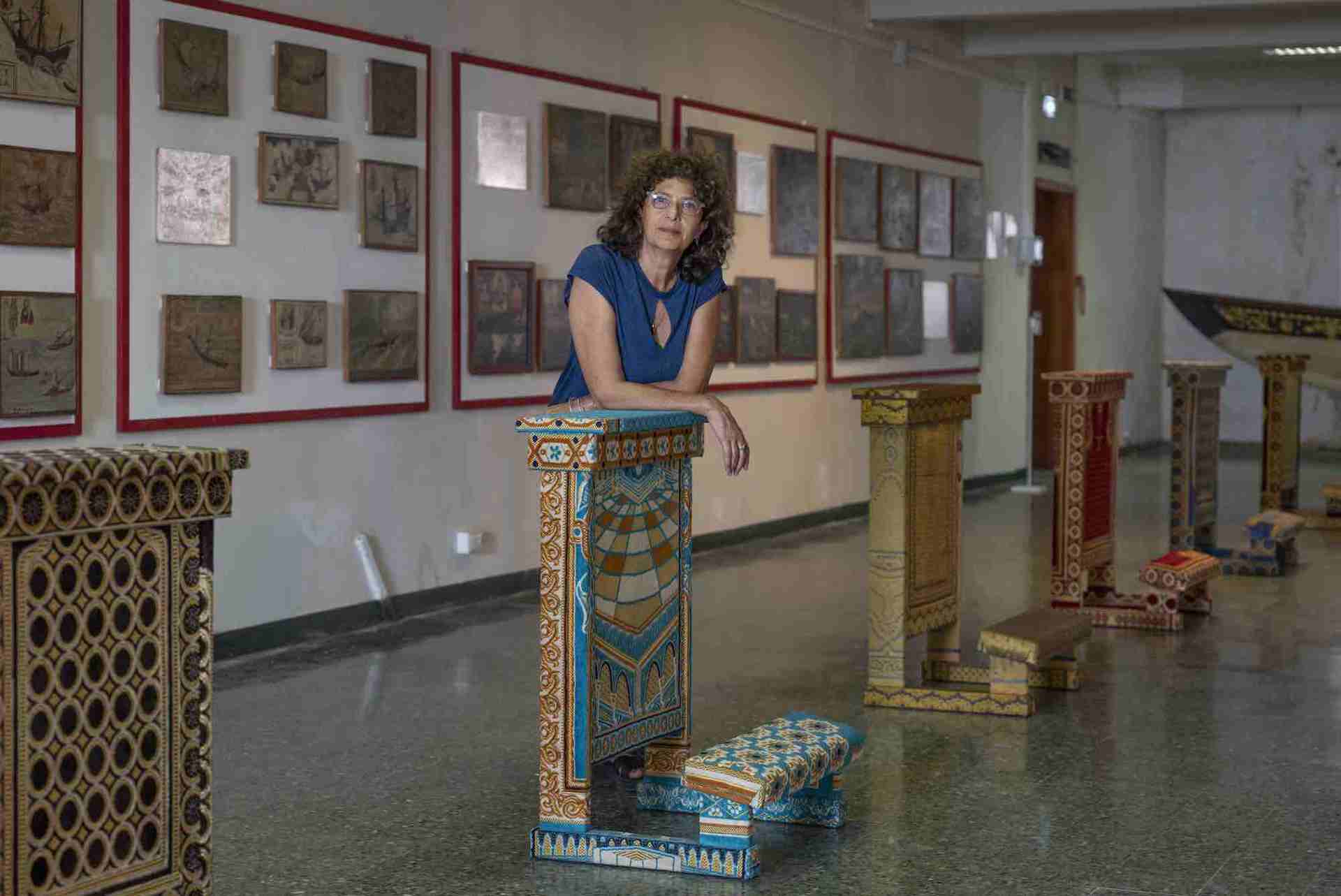 La mostra «Chiave terrestre» di Giulia Piscitelli, qui con alcuni suoi lavori, si snoda con delicatezza nelle sale del Museo Storico Navale di Venezia. © Andrea Pattaro/Vision