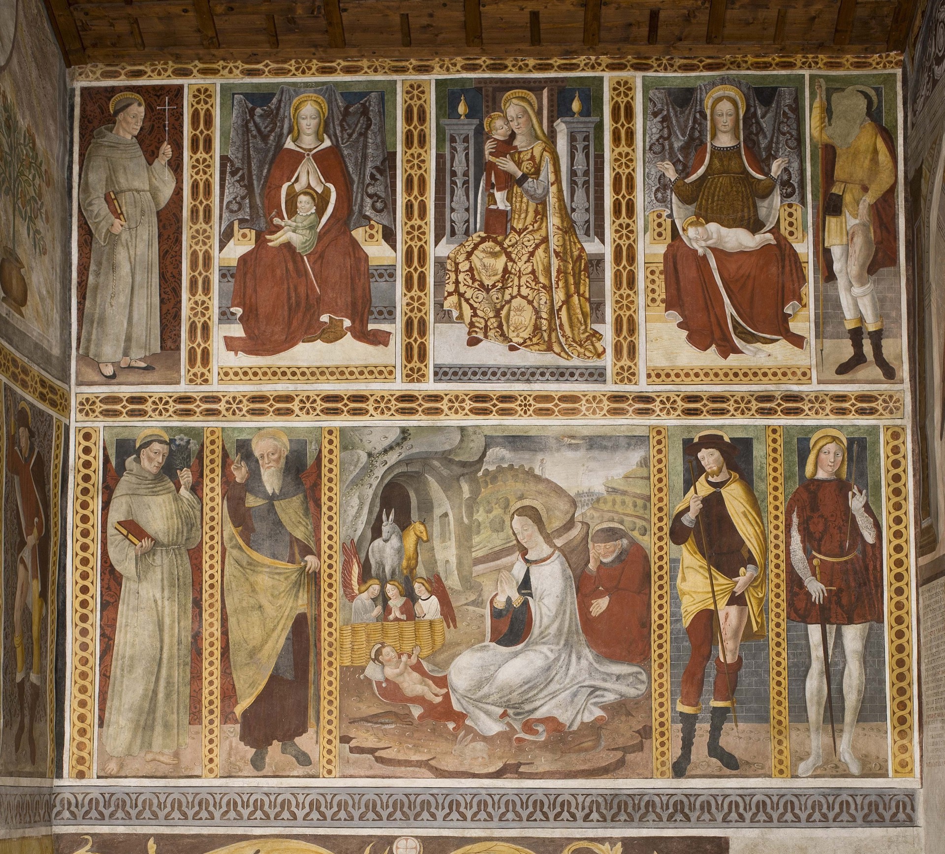 Straordinario museo diffuso, la Valle Camonica è punteggiata di interni affrescati nel corso del XIV e, soprattutto, XV secolo, prevalentemente a opera di Giovan Pietro da Cemmo, il più noto e prolifico pittore del Rinascimento camuno. Nella Chiesa di Santa Maria Assunta a Esine, per esempio, egli realizzò tanto i dipinti votivi dell’aula quanto quelli del presbiterio. Tra i primi spicca il polittico voluto dalla potente famiglia dei Federici, comprensivo di ben tre Madonne (diverse poiché interpreti di diverse riflessioni teologiche sulla maternità della Vergine e sul ruolo del suo figlioletto) e sei santi. I dipinti dell’area presbiteriale, introdotti dall’Annunciazione posta sull’arco santo (con l’angelo a sinistra e la Vergine a destra che, significativamente, inquadrano la grande Crocifissione del fondale), sviluppano un complesso programma iconografico che culmina, sulla volta, con un Paradiso dominato da un maestoso Cristo Giudice. La vasta produzione di Giovan Pietro da Cemmo, che lavorò in numerosissime chiese in tutta la Valle, meriterebbe maggiore attenzione (e certo un’indagine più approfondita) quale testimonianza di un Rinascimento minore e periferico ma vivido e vivacissimo: uno dei molti che compongono lo straordinario Museo diffuso d’Italia.