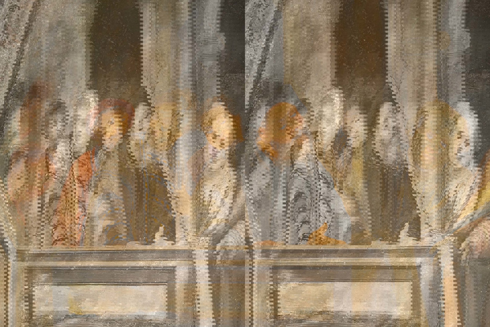 Leggi i suoi articoliForse ignare degli illustri precedenti dipinti per fingere una finzione talmente credibile da trarre in inganno persino la natura, una mosca zampetta su una ciliegia, una sul collo del cane vicino a Giuda e un’altra sulla panca dove Giuda siede. Sulla tovaglia spiccano gamberi di fiume già sbocconcellati, un grosso granchio, pani, pesci, salini colmi del prezioso contenuto e molti bicchieri e bottiglie riempiti di vino rosso. Mentre (come narrato nei Vangeli) Gesù porge a Giuda il boccone, gli apostoli pasteggiano rispettando le buone maniere di quel 1476 in cui l’«Ultima cena» fu affrescata: con intento didattico dottrinale anche se, probabilmente, molti vi scorgevano soprattutto il sogno di cibo abbondante e buono.