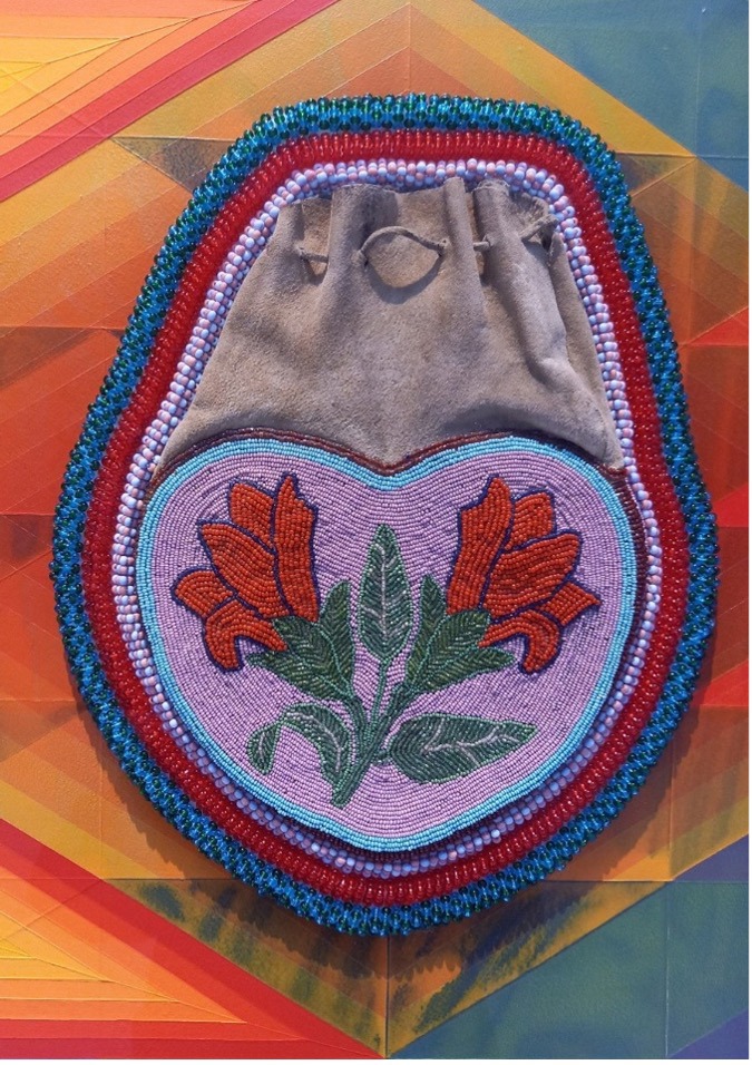Nelle due opere sopra citate gli oggetti sono, rispettivamente, una cintura o striscia con fiorellini (XXI secolo) e una coppia di sacchetti con mazzolini fioriti (1920-50 ca) entrambi con un ricamo di perline di vetro. Acquistati in mercatini dallo stesso Gibson, questi manufatti di autore ignoto (del Columbia River Plateau / Northern Plains / Western Great Lakes) sono inseriti nel dipinto in modo da poter essere sostituiti nel caso un avente diritto ne faccia richiesta.