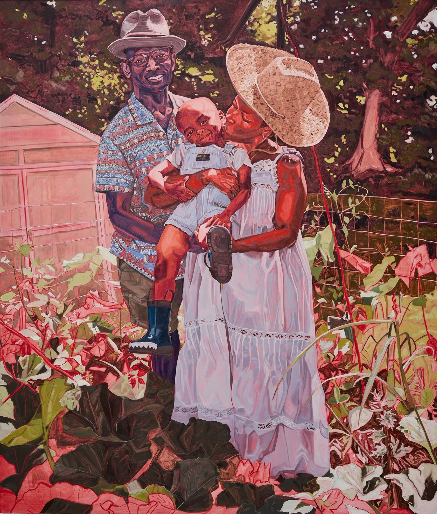 Jordan Casteel, «Naima’s Gift (Deon, Kym and Noah)», 2023. Foto: David Schulze. © Jordan Casteel. Cortesia della galleria Thaddaeus Ropac