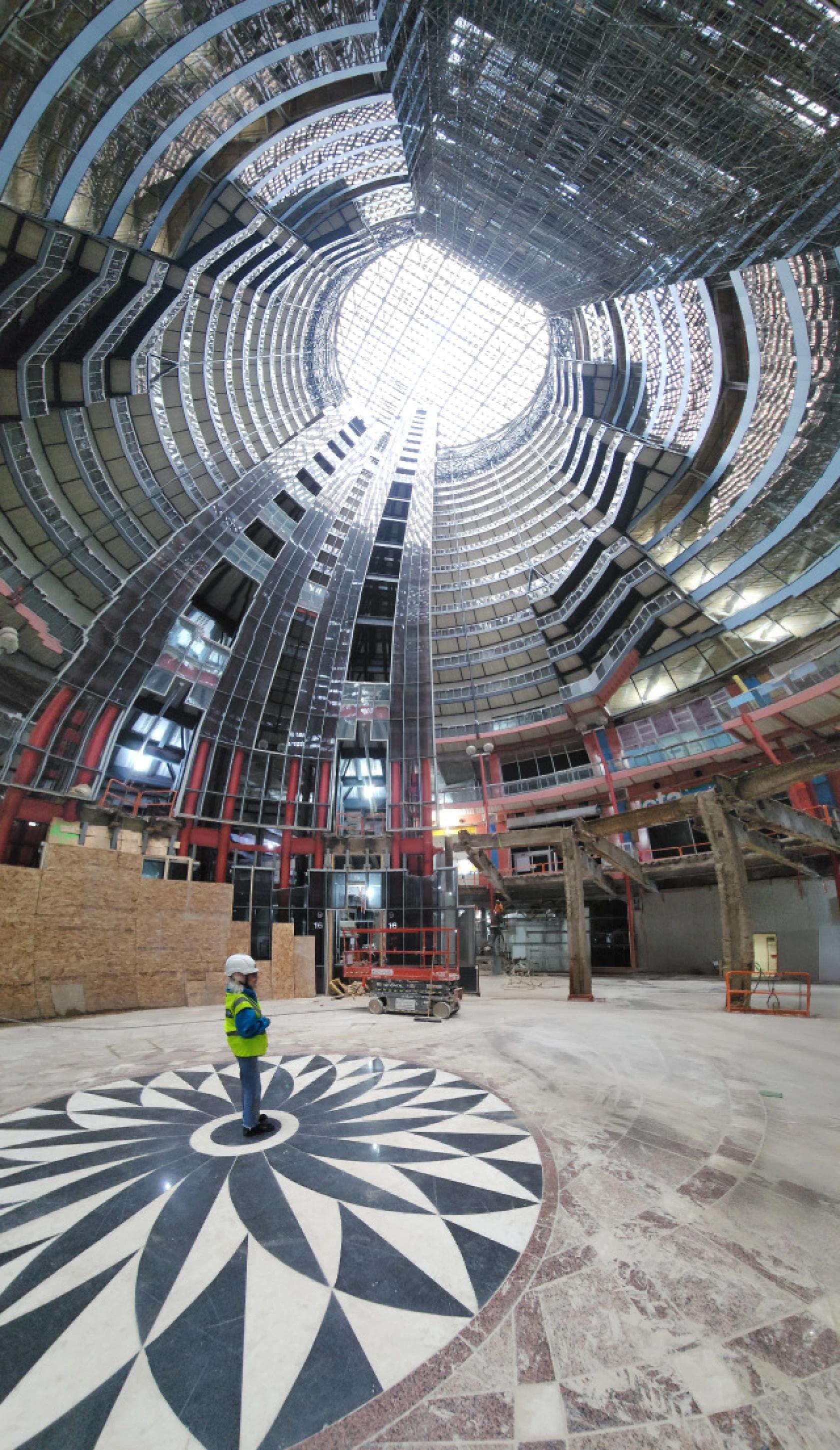 La sede in questione è il James R. Thompson Center, l’edificio circolare progettato da Helmut Jahn negli anni Ottanta, icona del postmoderno recentemente acquistata da Google per farne il proprio quartier generale cittadino. Un intervento importante sia per la città sia per l’azienda, che dopo gli anni del lavoro da remoto punta a riaffermare una presenza fisica forte e riconoscibile. L’idea è trasformarlo in un grande hub urbano: uffici per migliaia di dipendenti e, al centro, una piazza coperta aperta al pubblico con negozi e servizi. È proprio lì, alla base dello spazio cilindrico attraversato da ascensori panoramici, che avrebbe dovuto inserirsi l’intervento di Chicago, sviluppato insieme al marito, il fotografo e architetto Donald Woodman.