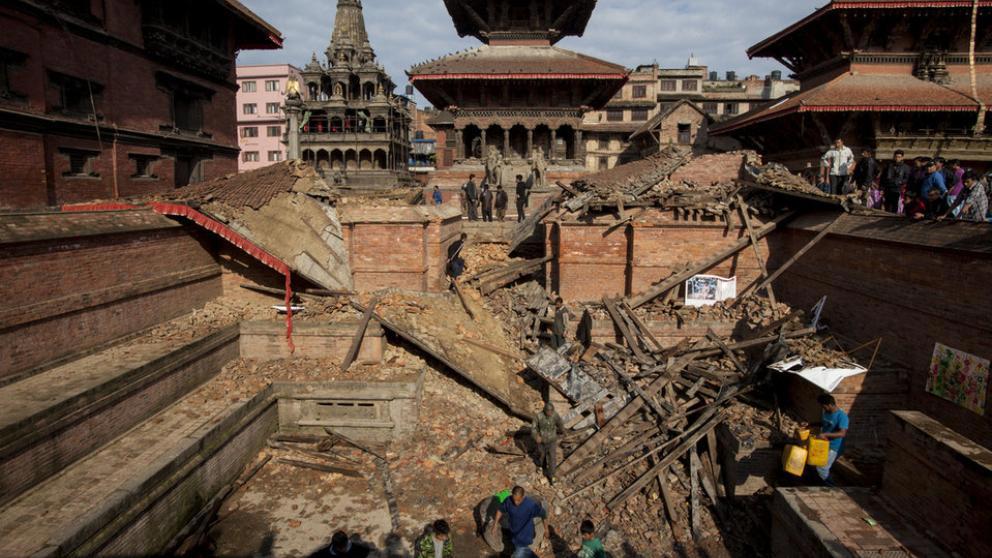 Un’immagine dei danni causati dal terremoto del 25 aprile 2015 nella Valle di Kathmandu
