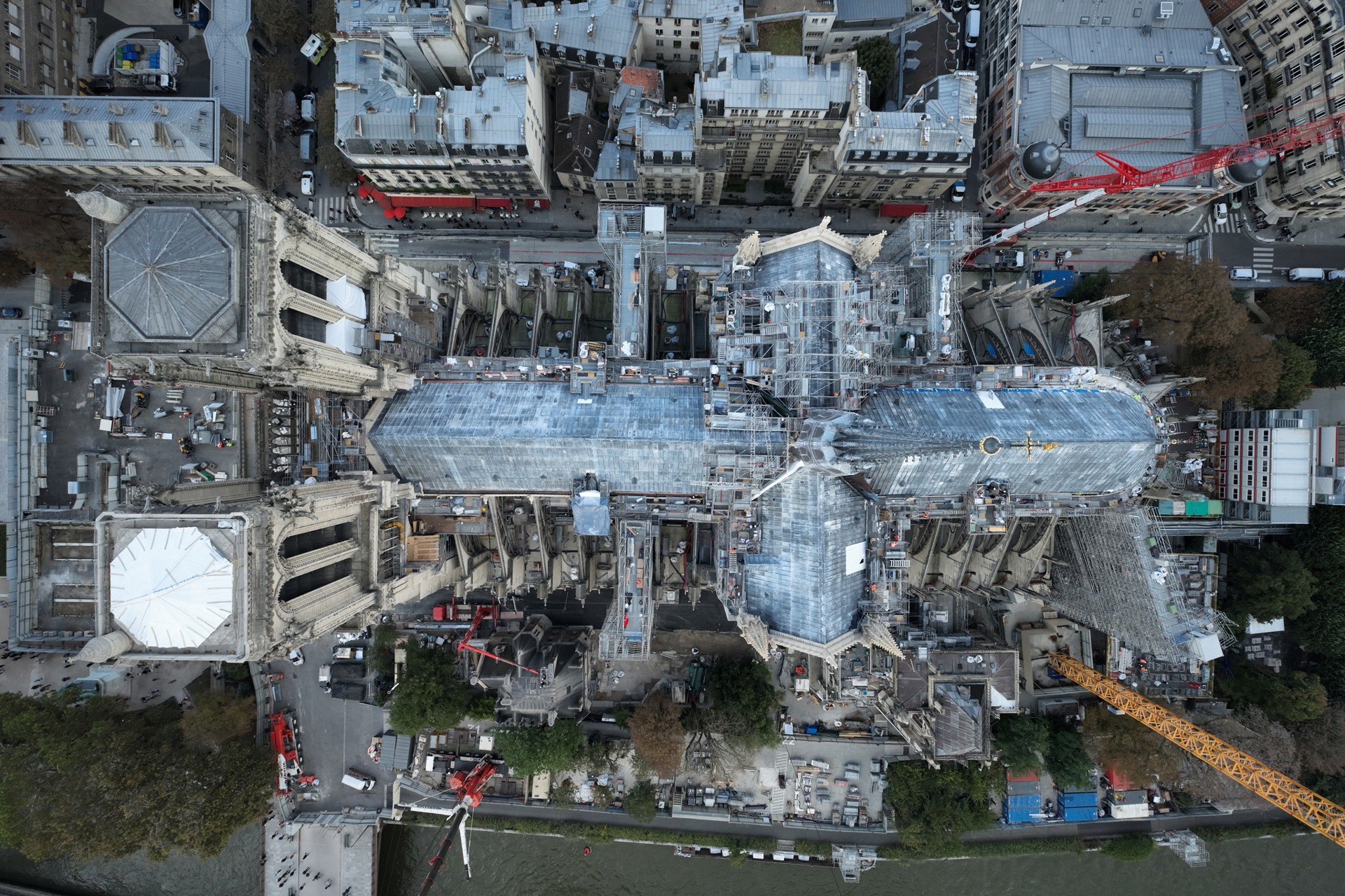 Una veduta aerea sulla Cattedrale di Notre-Dame. © Rebâtir Notre-Dame de Paris / Skunati