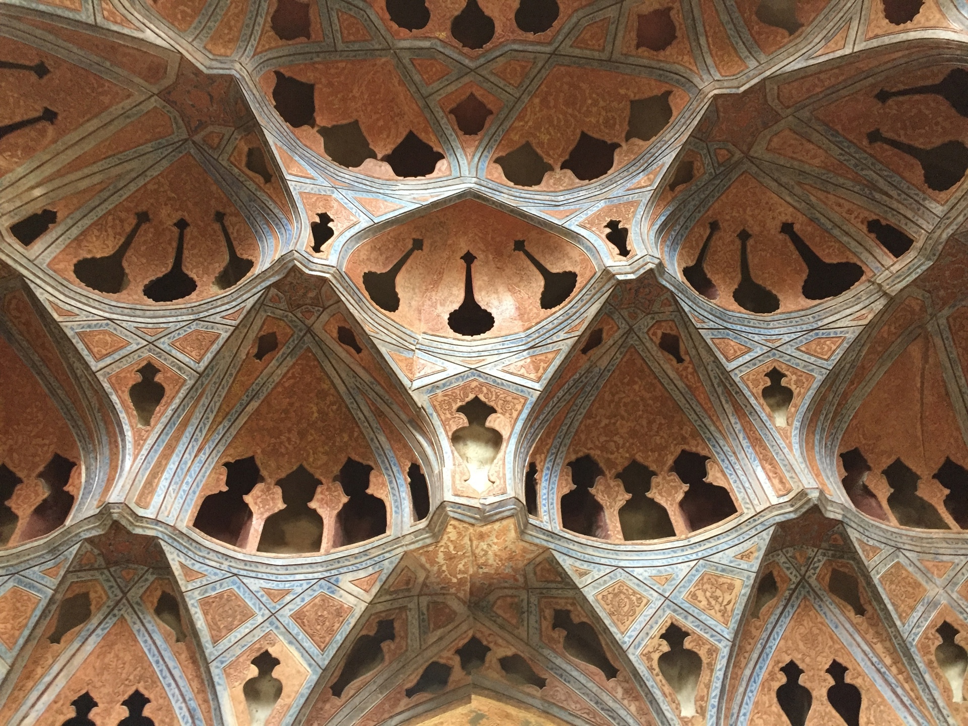Dettagli del soffitto della Sala della Musica nel Palazzo Ali Qapu a Isfahan, affacciato su piazza Naqsh-e Jahan. Foto Alessandro Martini, 2018